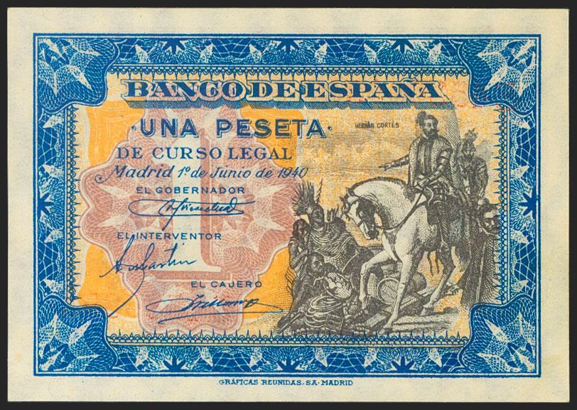 1 Peseta. June 1, 1940. Series E, last series issued. (Edifil 2021: 441a). Original sizing. Uncirculated.
