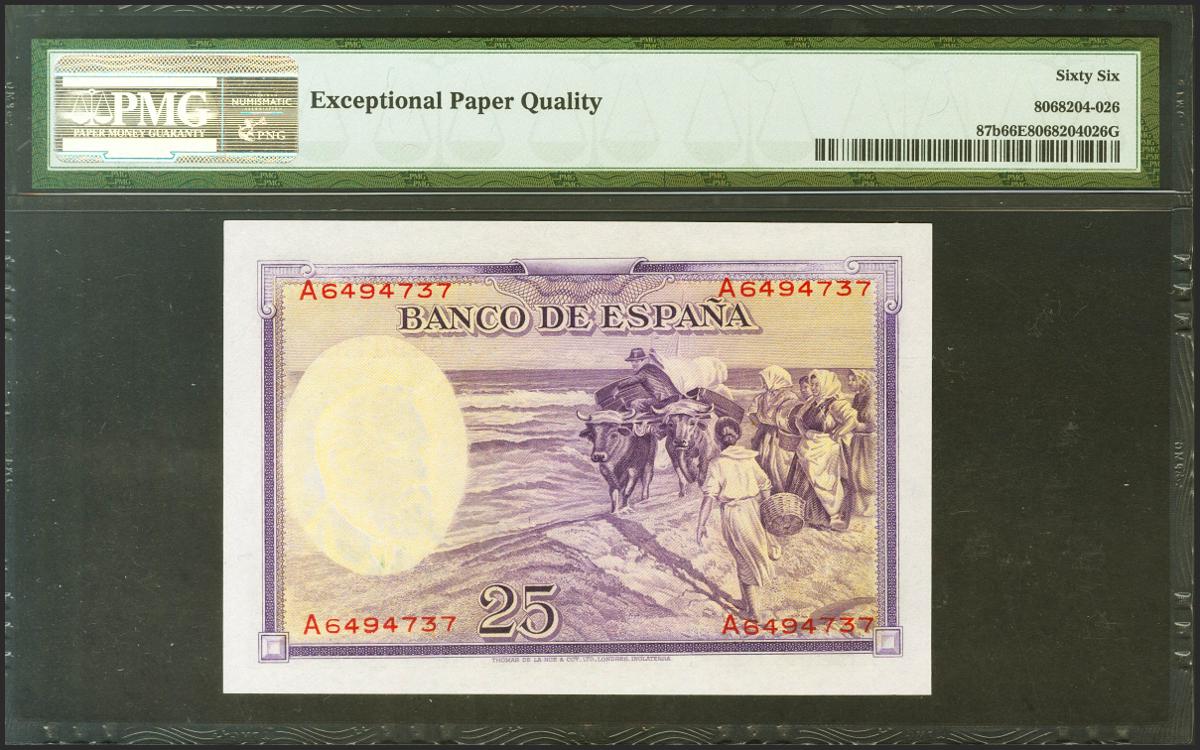 25 pesetas. August 31, 1936. Series A. (Edifil 2017: 367a, Pick: 87b). Original sizing. PMG66EPQ package.
