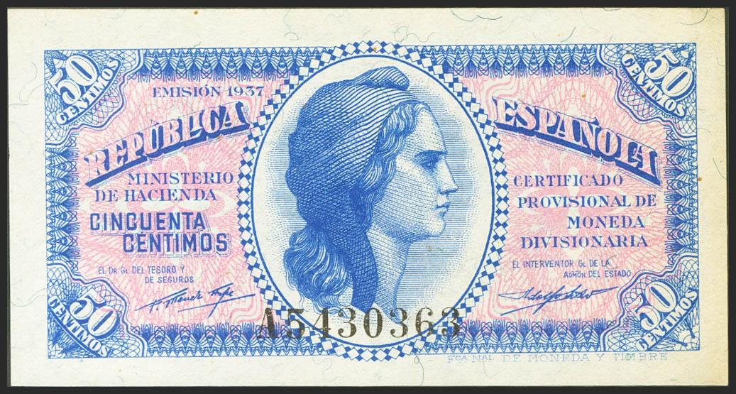 English 50 cents. 1937. Series A. (Edifil 2021: 391). Original sizing. Uncirculated.