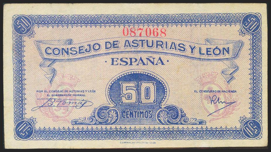 50 cents. Asturias and Leon. No serie. (Edifil 2021: 396). Unusual. Almost Extremely Fine.