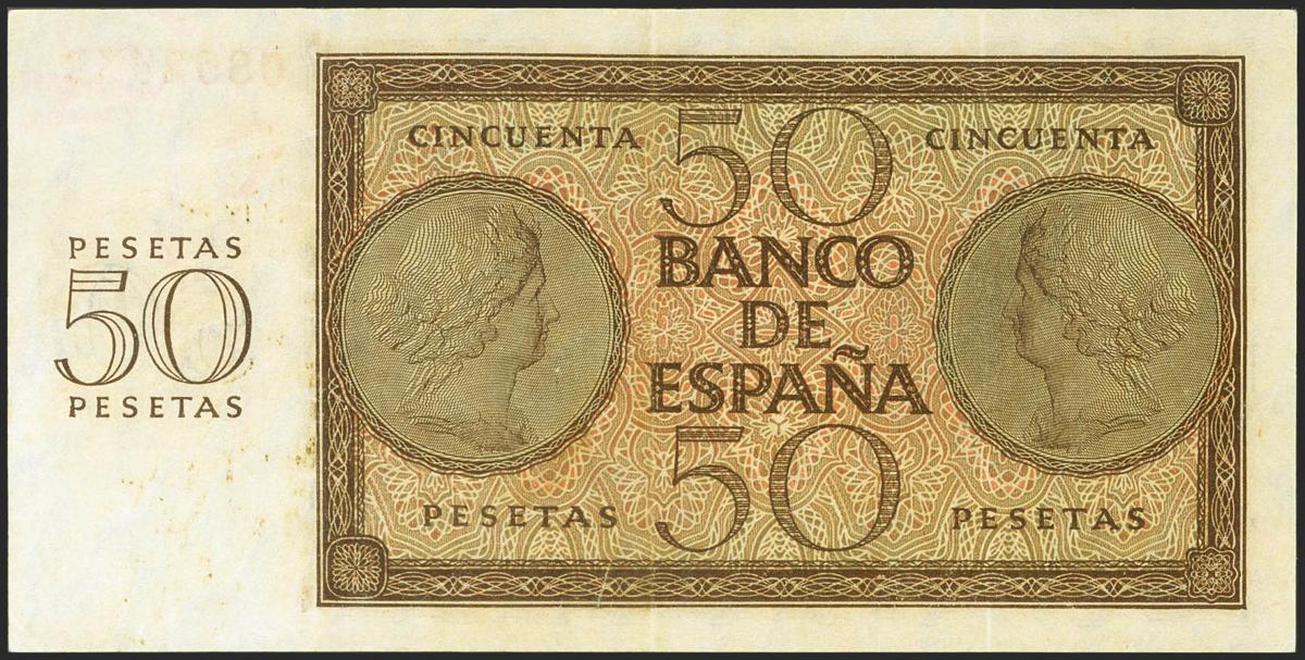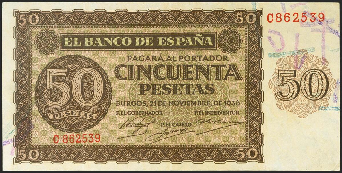 50 pesetas. November 21, 1936. Series C. (Edifil 2021: 420a). Almost Extremely Fine.