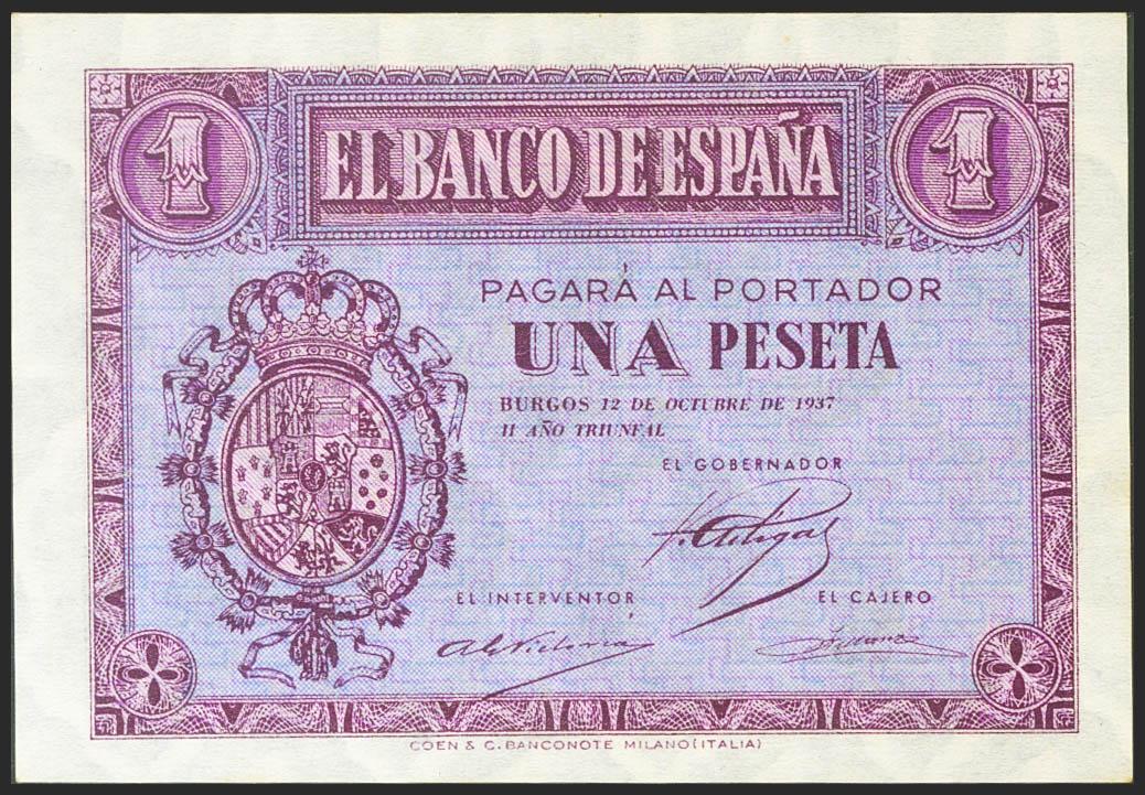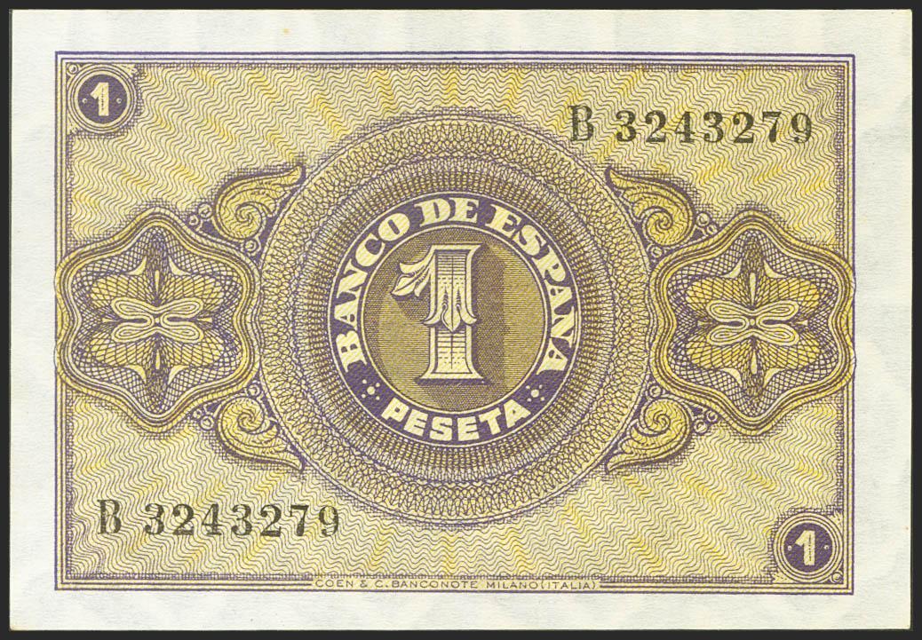 English 1 Peseta. October 12, 1937. Series B. (Edifil 2021: 425a). Original sizing. Uncirculated.