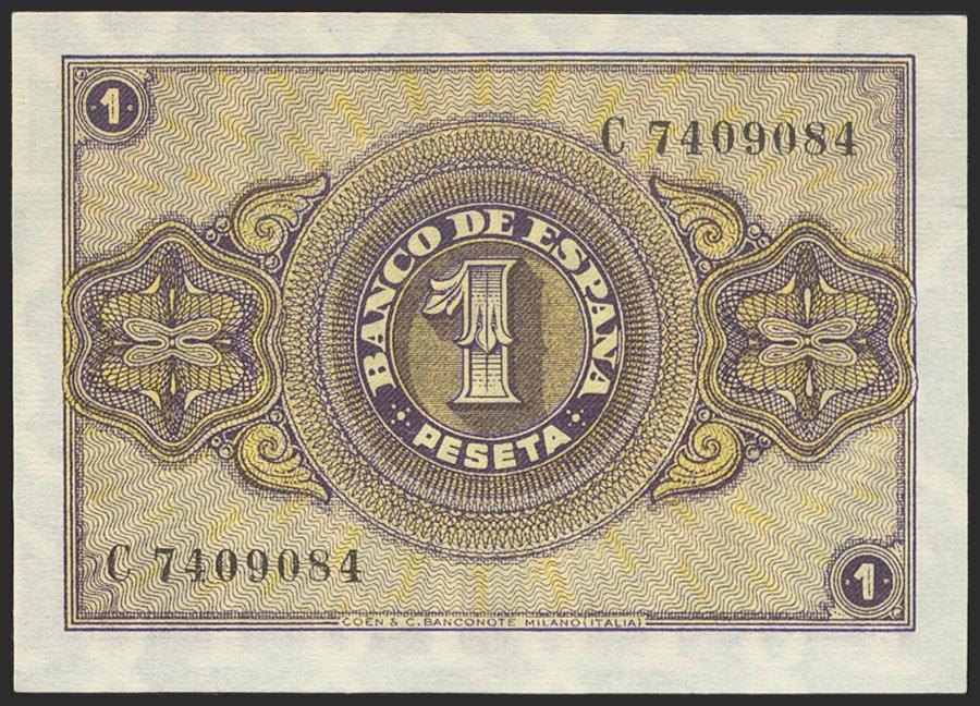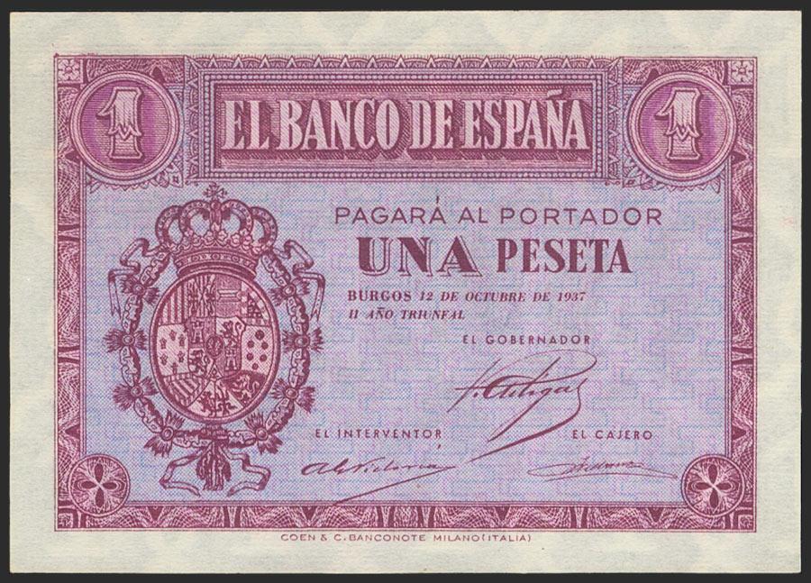 1 Peseta. October 12, 1937. Series C. (Edifil 2021: 425a). Original sizing. Uncirculated.