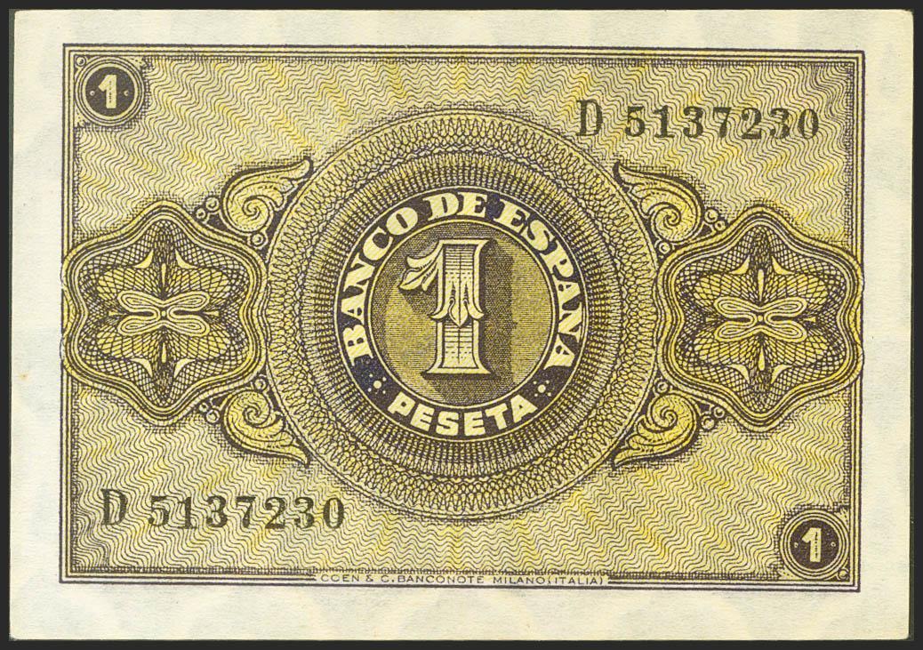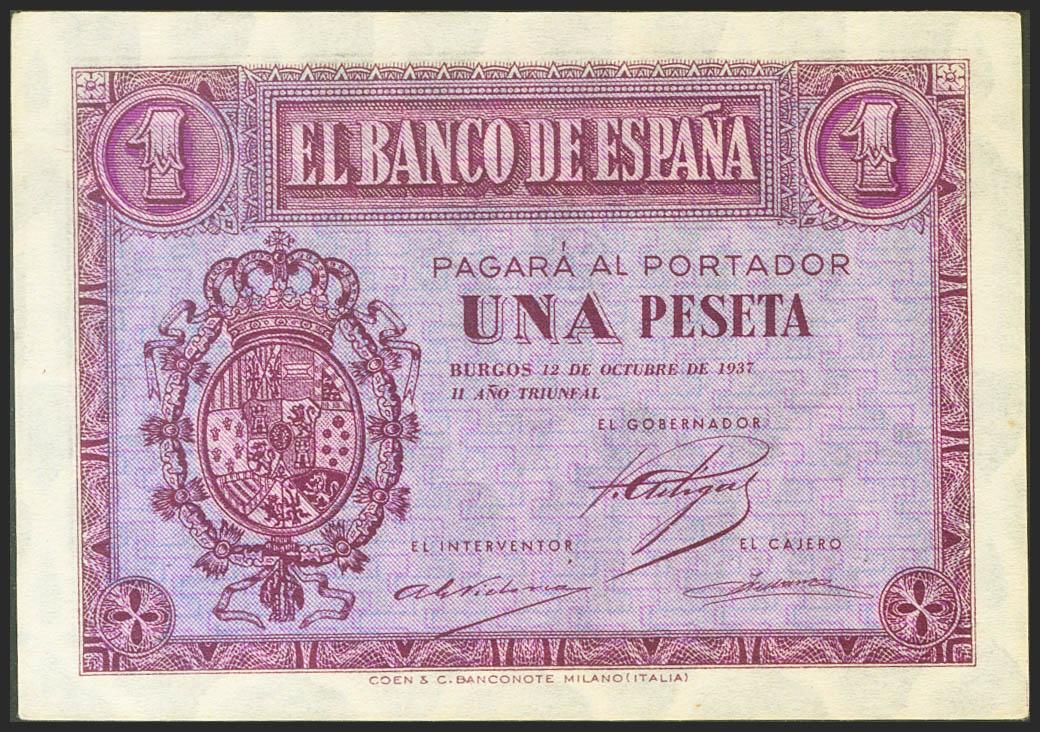 1 Peseta. October 12, 1937. Series D. (Edifil 2021: 425a). Original sizing. Uncirculated.