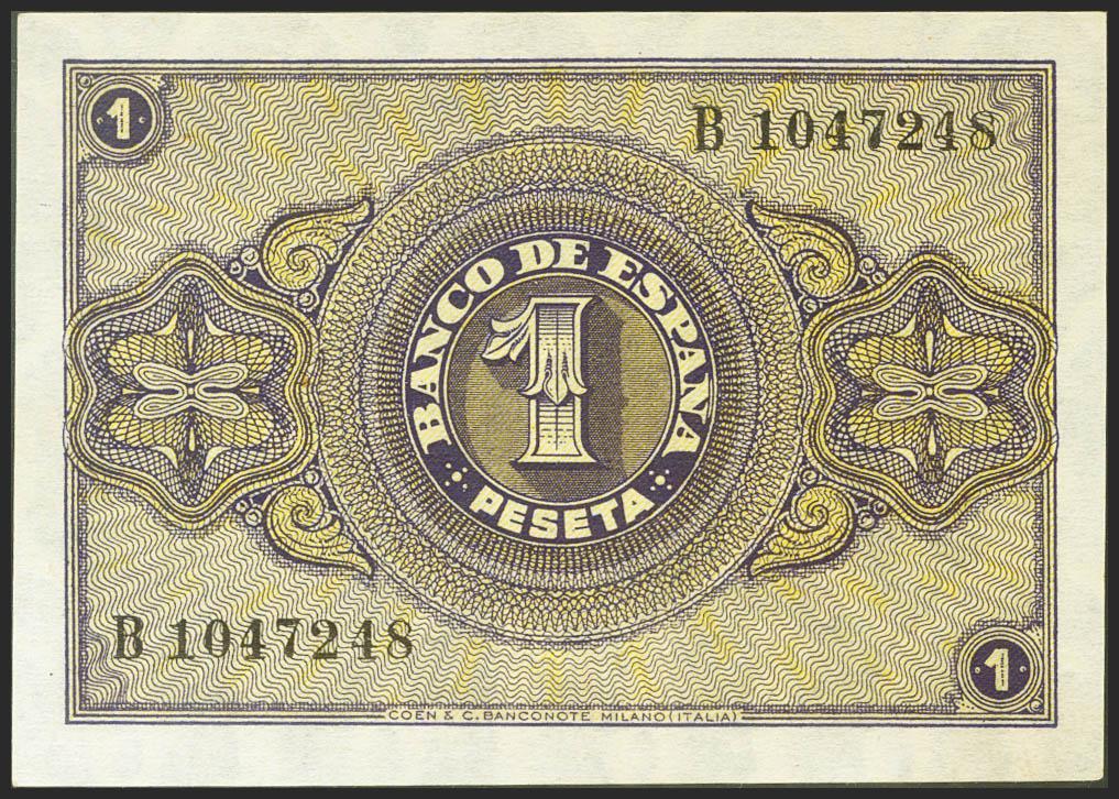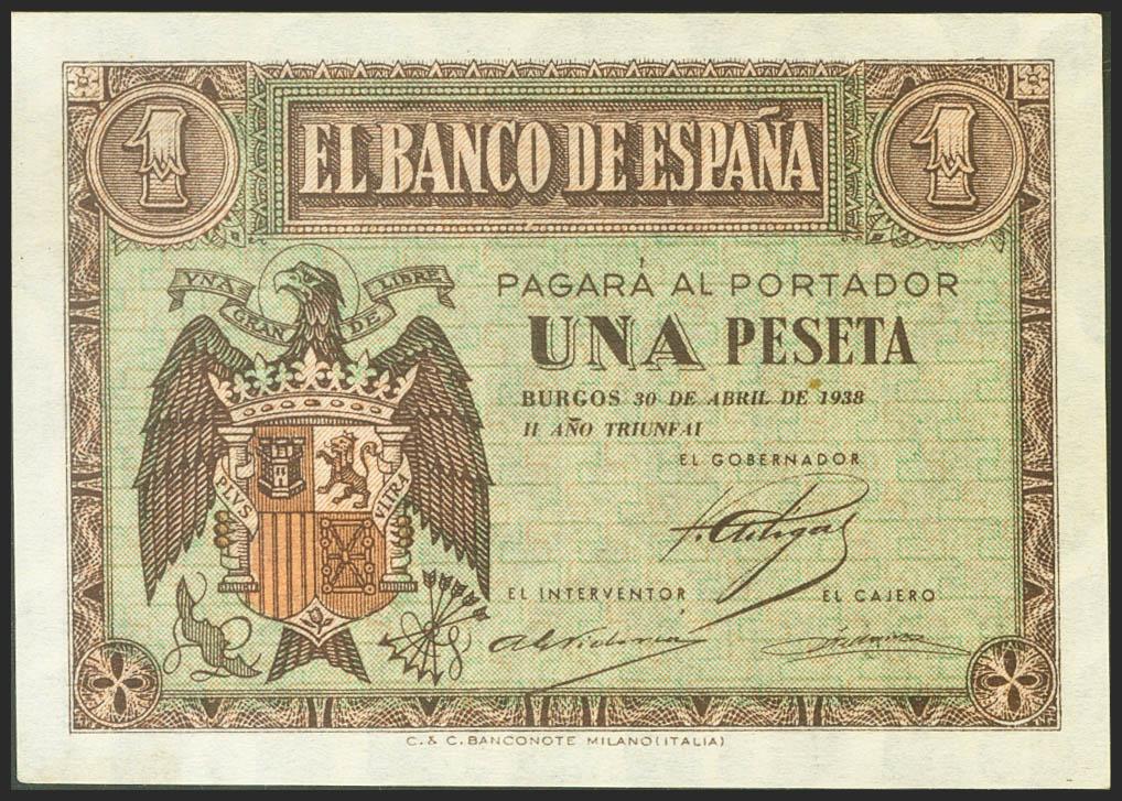 1 Peseta. April 30, 1938. Series B. (Edifil 2021: 428a). Original sizing. Uncirculated.