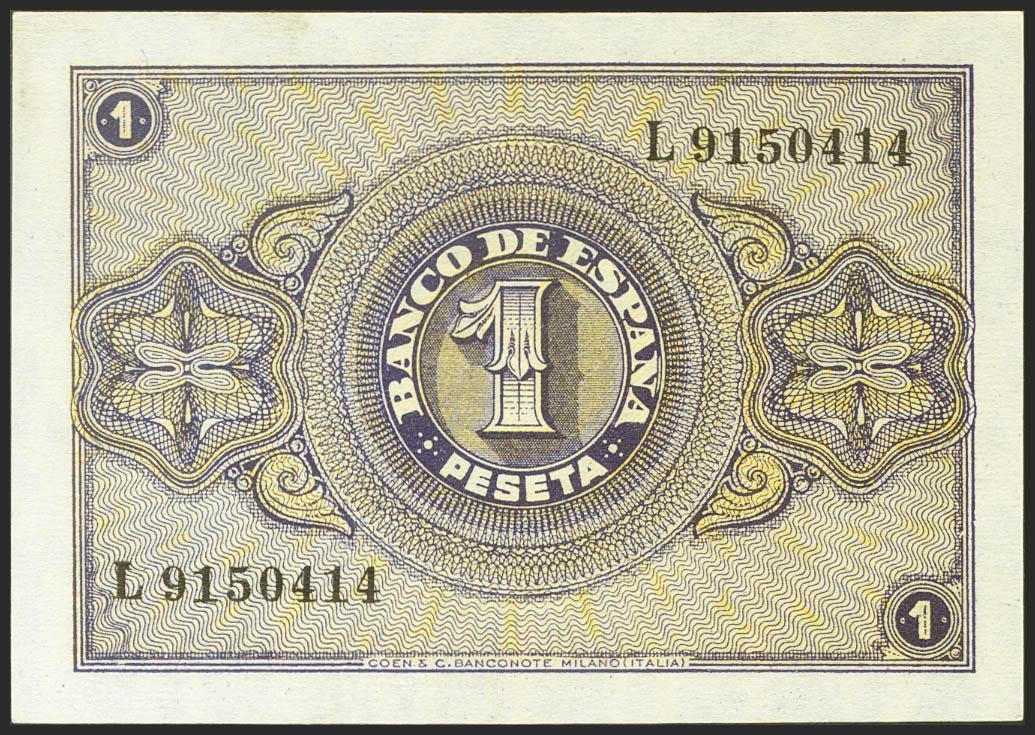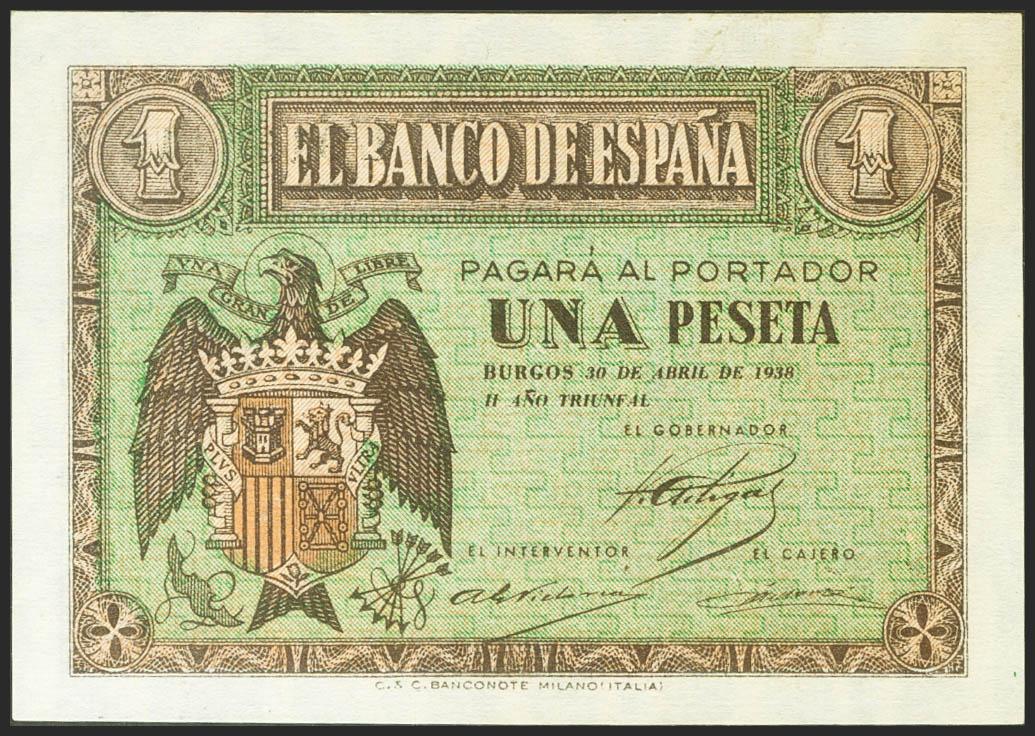 1 Peseta. April 30, 1938. Series L. (Edifil 2021: 428a). Original sizing. Almost Uncirculated-.
