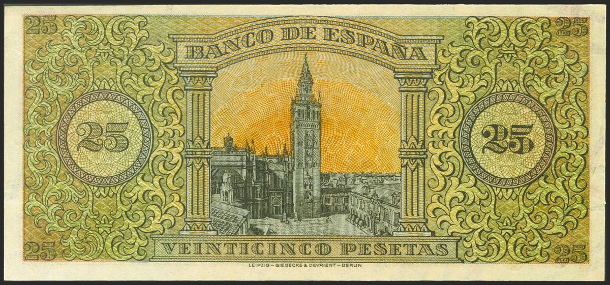 25 pesetas. May 20, 1938. Series E. (Edifil 2021: 430a). Retains much of the original sizing. Good Extremely Fine.