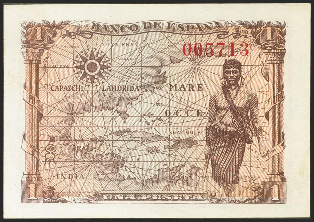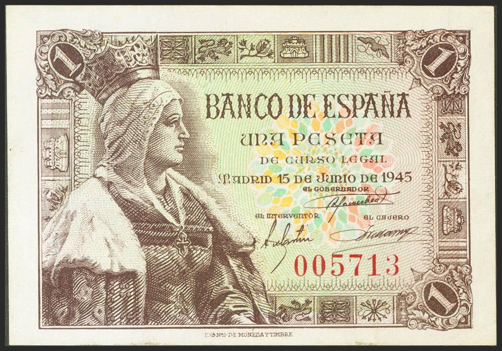 1 Peseta. June 15, 1945. No series and very low numbering. (Edifil 2021: 448). Original sizing. Uncirculated.