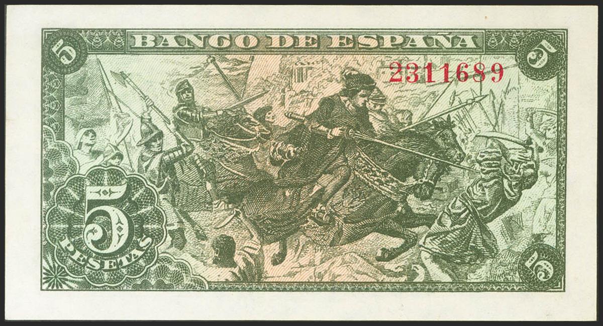 5 pesetas. June 15, 1945. No series. (Edifil 2021: 449). Presents much of its original sizing. EBC++.