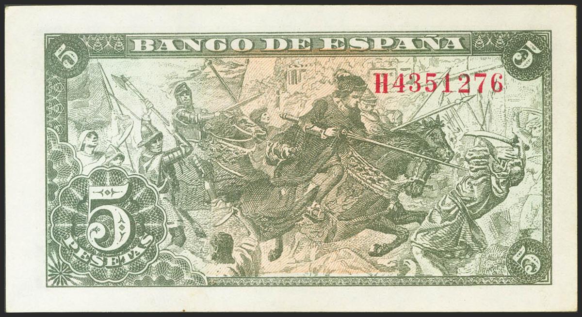 5 pesetas. June 15, 1945. Series H. (Edifil 2021: 449a). Original sizing. Uncirculated.