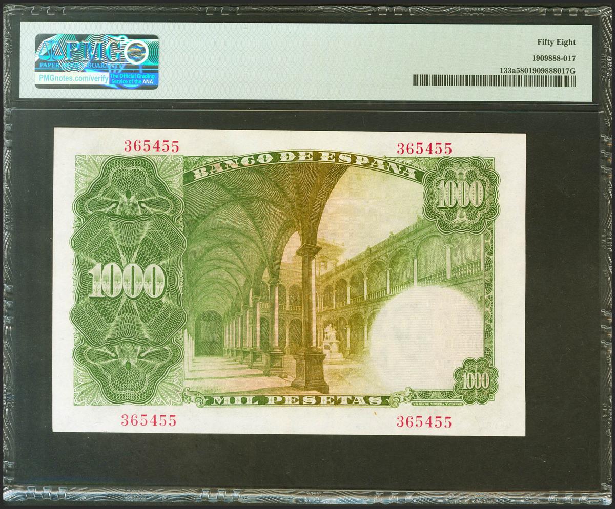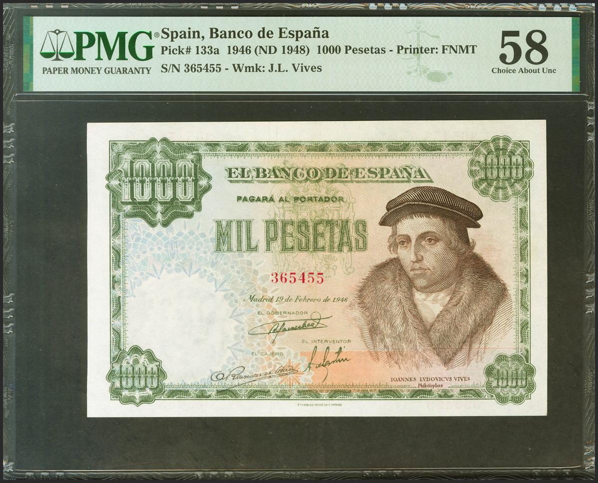 1000 Pesetas. February 19, 1946. No series. (Edifil 2021: 453, Pick: 133a). EBC++. PMG58 encapsulation.