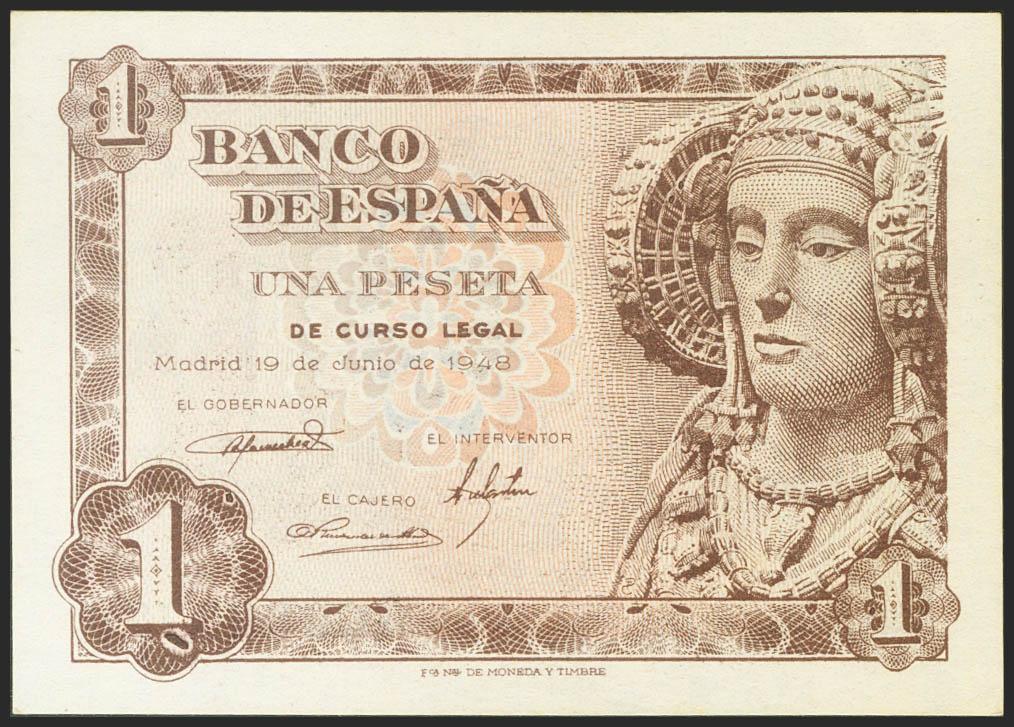 1 Peseta. June 19, 1948. Series G. (Edifil 2021: 457a). Original sizing. Uncirculated.