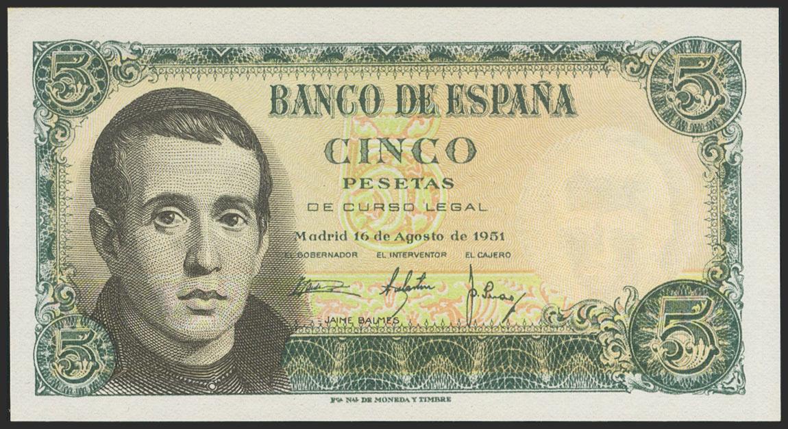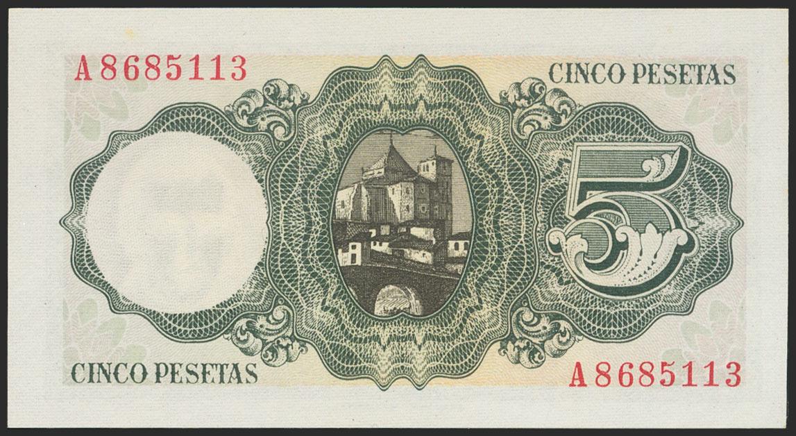 5 pesetas. August 16, 1951. Series A. (Edifil 2021: 459a). Uncirculated.