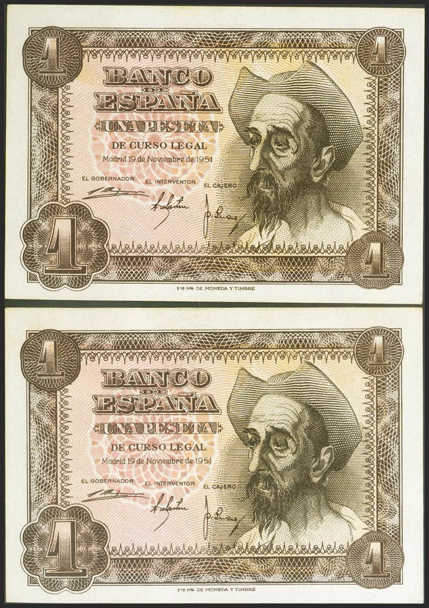 English 1 Peseta. November 19, 1951. Correlative couple. No serie. (Edifil 2021: 461). Original sizing. Uncirculated.