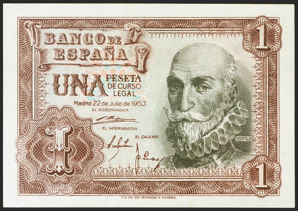 1 Peseta. July 22, 1953. No series. (Edifil 2021: 465). Original sizing. Almost Uncirculated.