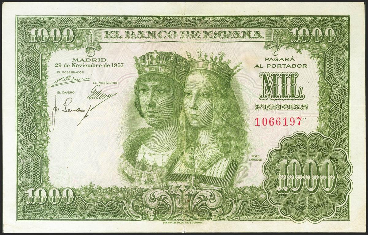1000 Pesetas. November 29, 1957. No series. (Edifil 2021: 469). Almost Very Fine.