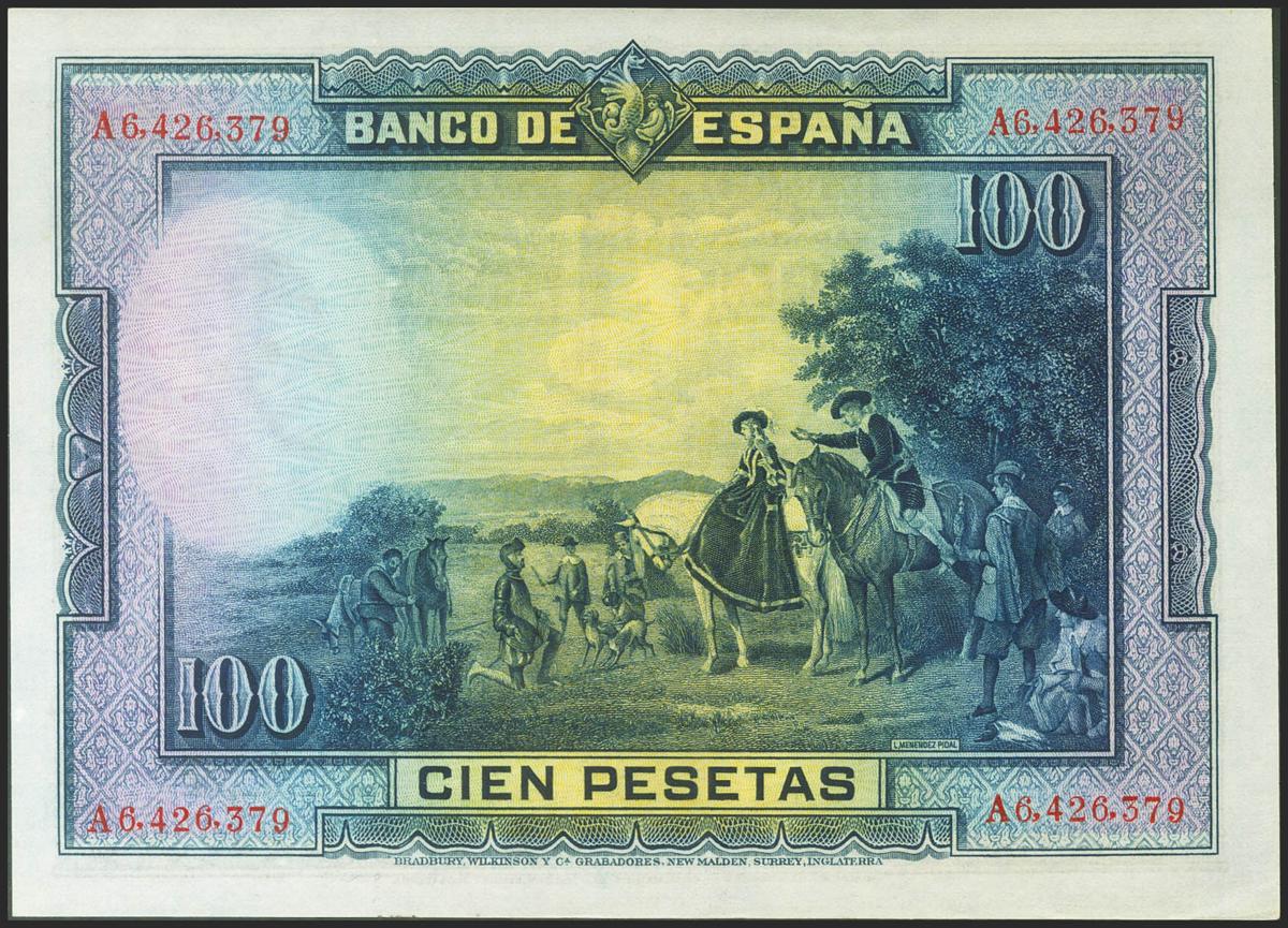 100 pesetas. August 15, 1928. Series A. (Edifil 2021: 355a). Original sizing. Uncirculated.