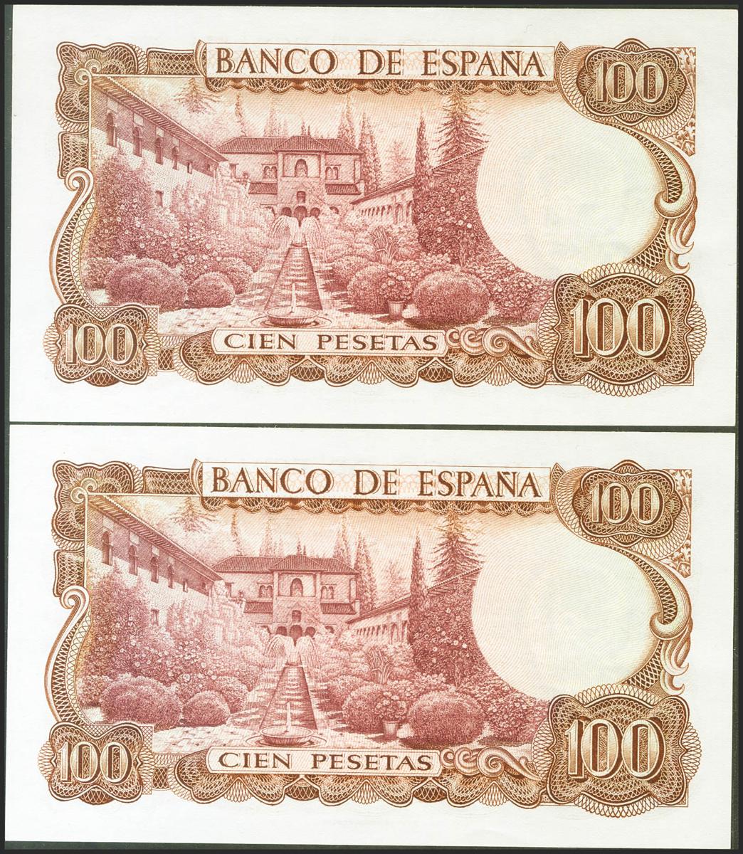 100 pesetas. November 17, 1970. Correlative couple. 5J series. (Edifil 2021: 472c). Original sizing. EBC++.