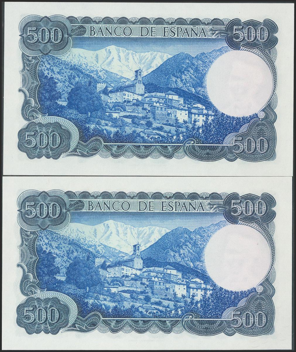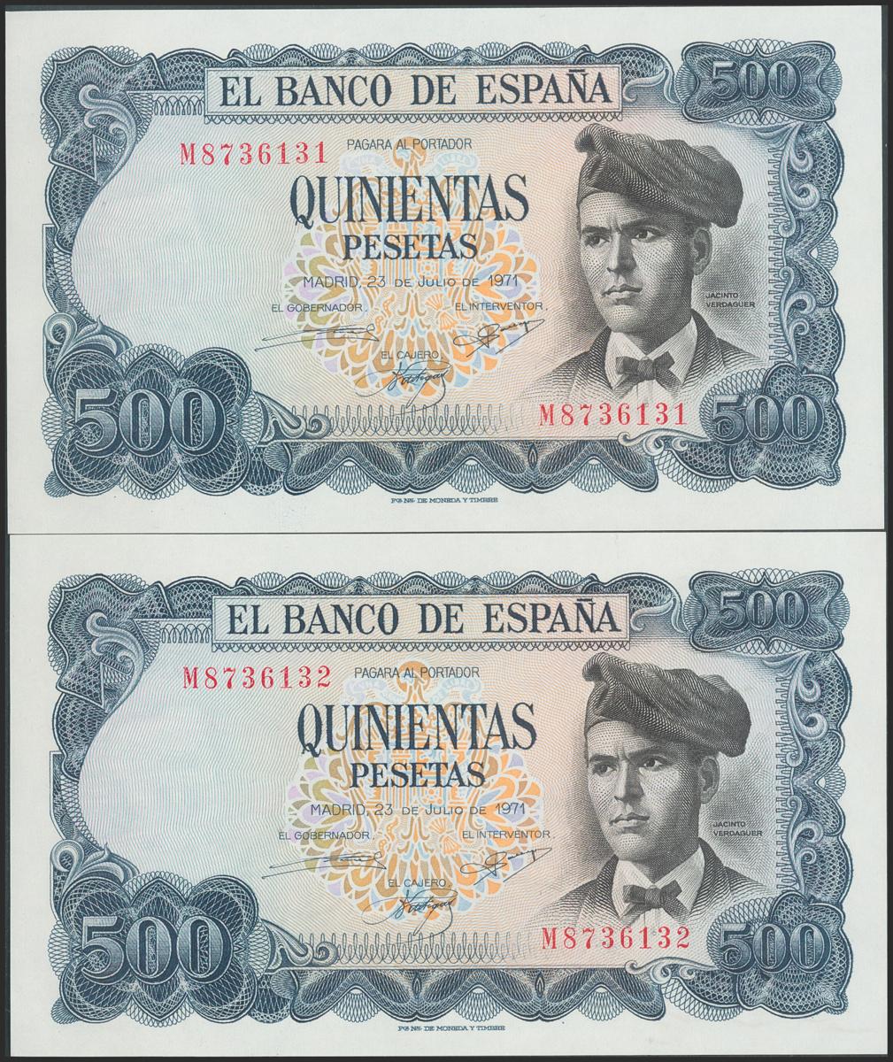 500 pesetas. November 23, 1971. Correlative couple. Series M. (Edifil 2017: 473a). Uncirculated/ Almost Uncirculated