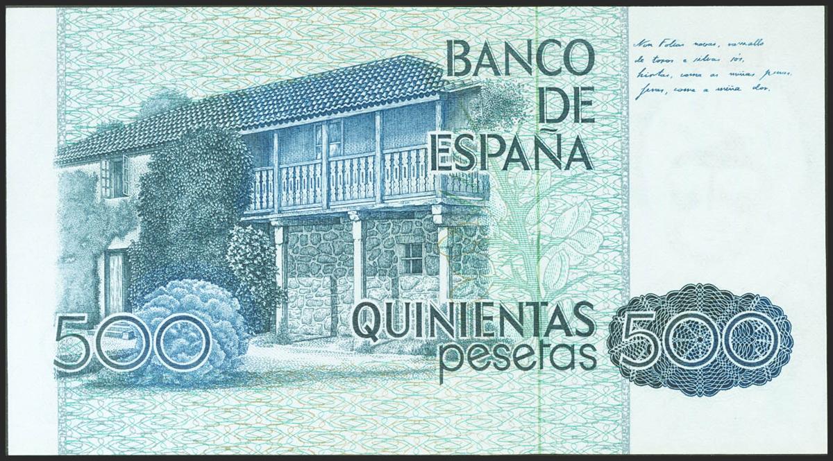 English 500 pesetas. October 23, 1979. No series. (Edifil 2021: 476). Uncirculated.