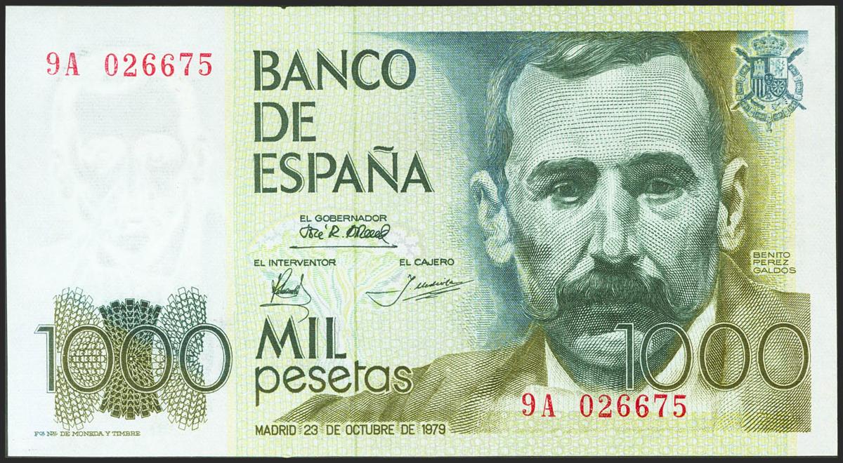 1000 Pesetas. October 23, 1979. Series 9A. (Edifil 2017: 477b). Unusual. Almost Uncirculated.