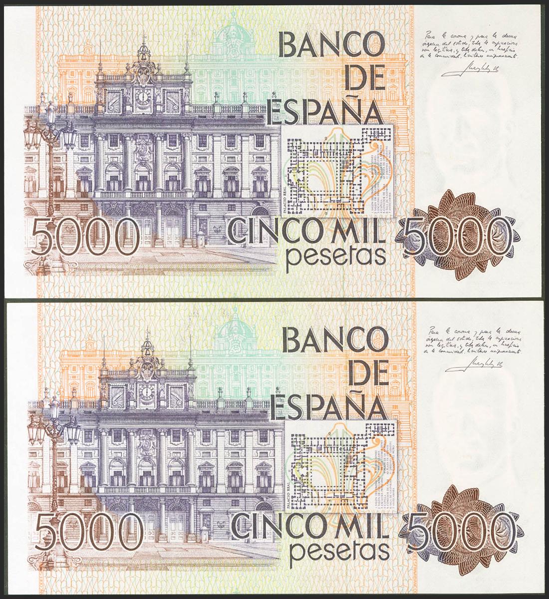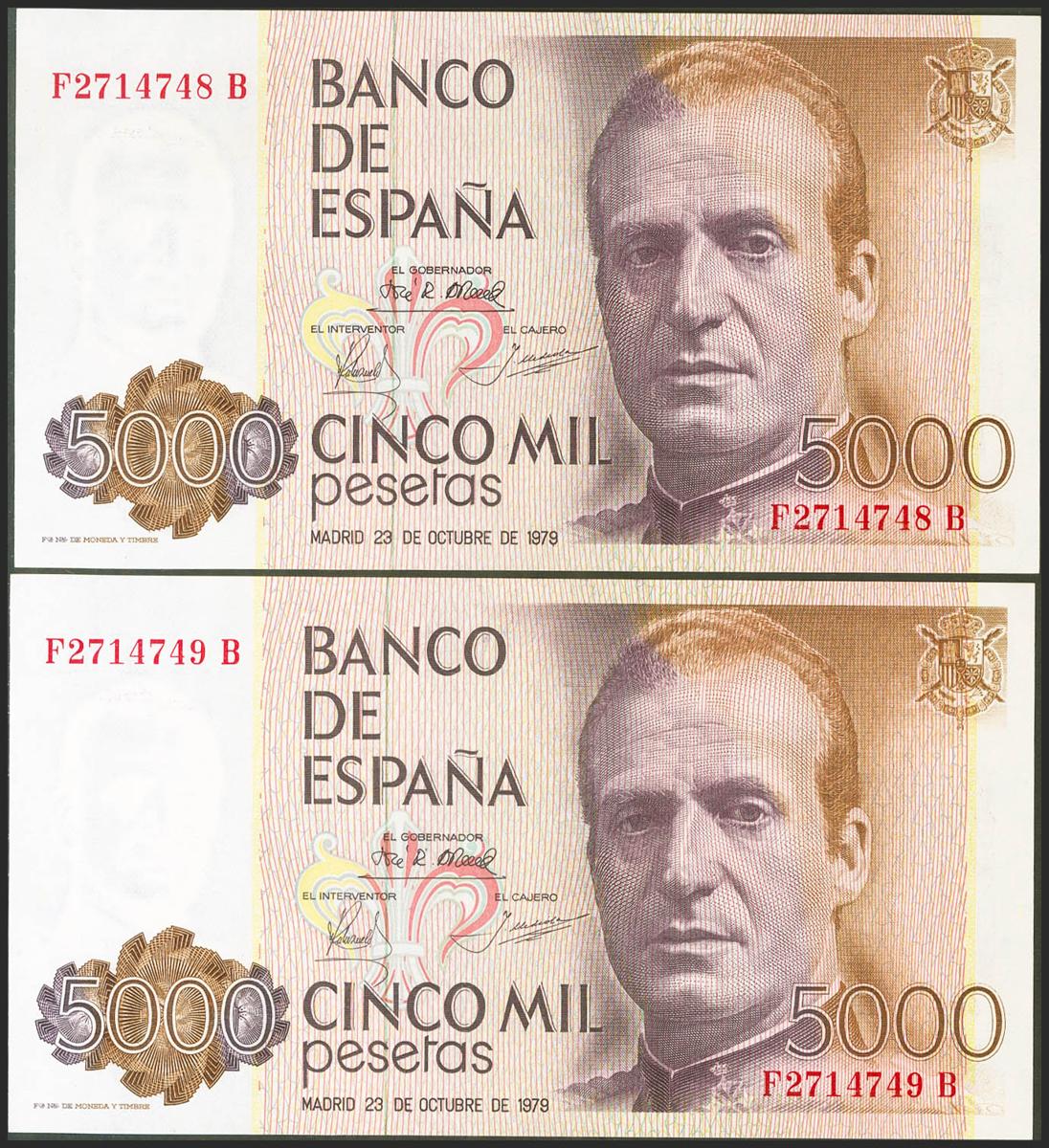 5000 Pesetas. October 23, 1979. Correlative couple. FBseries. (Edifil 2021: 478a). Good Extremely Fine.