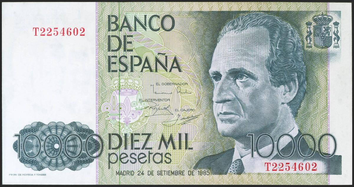 10,000 Pesetas. September 24, 1985. Series T. (Edifil 2021: 481a). Almost Uncirculated.