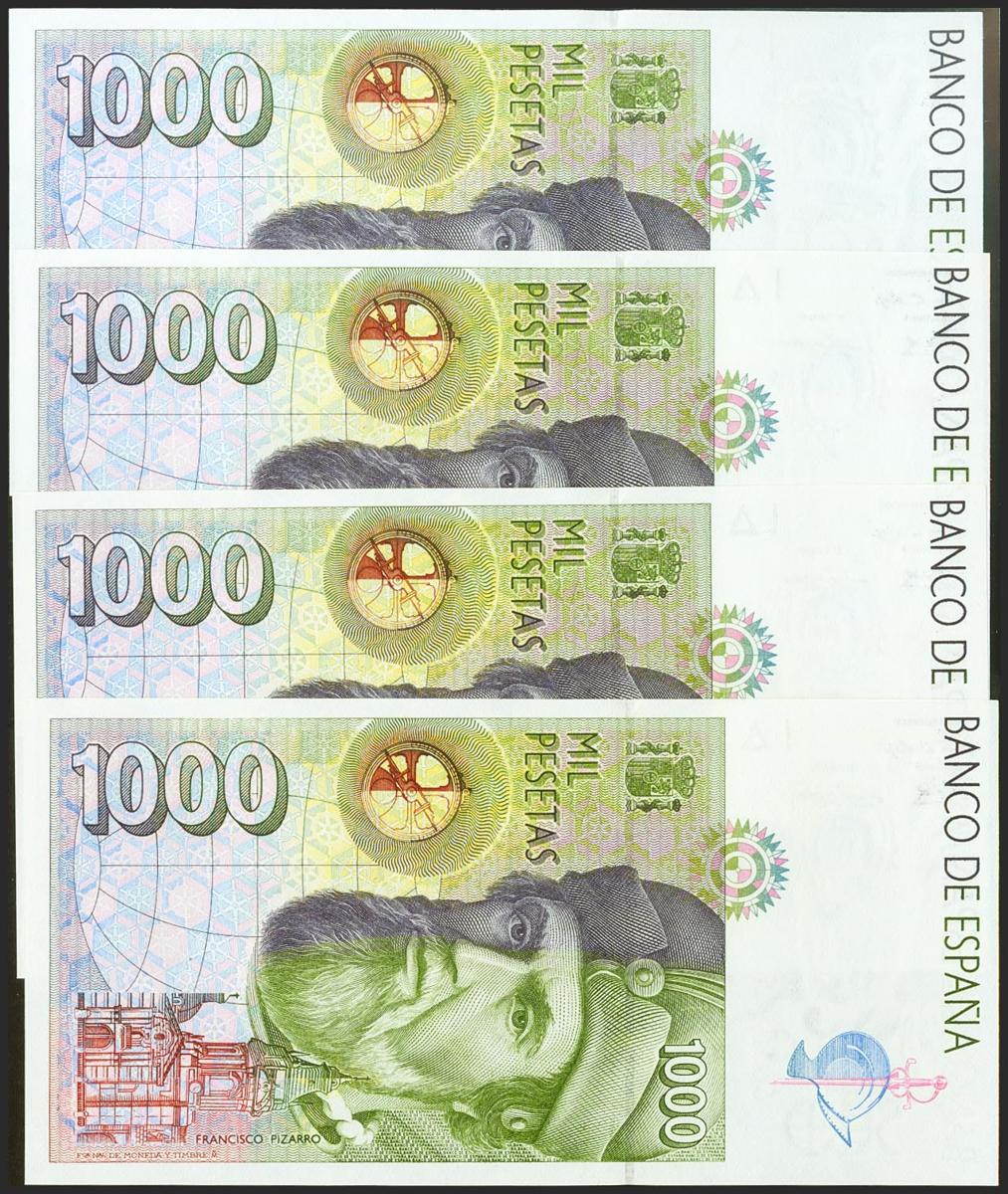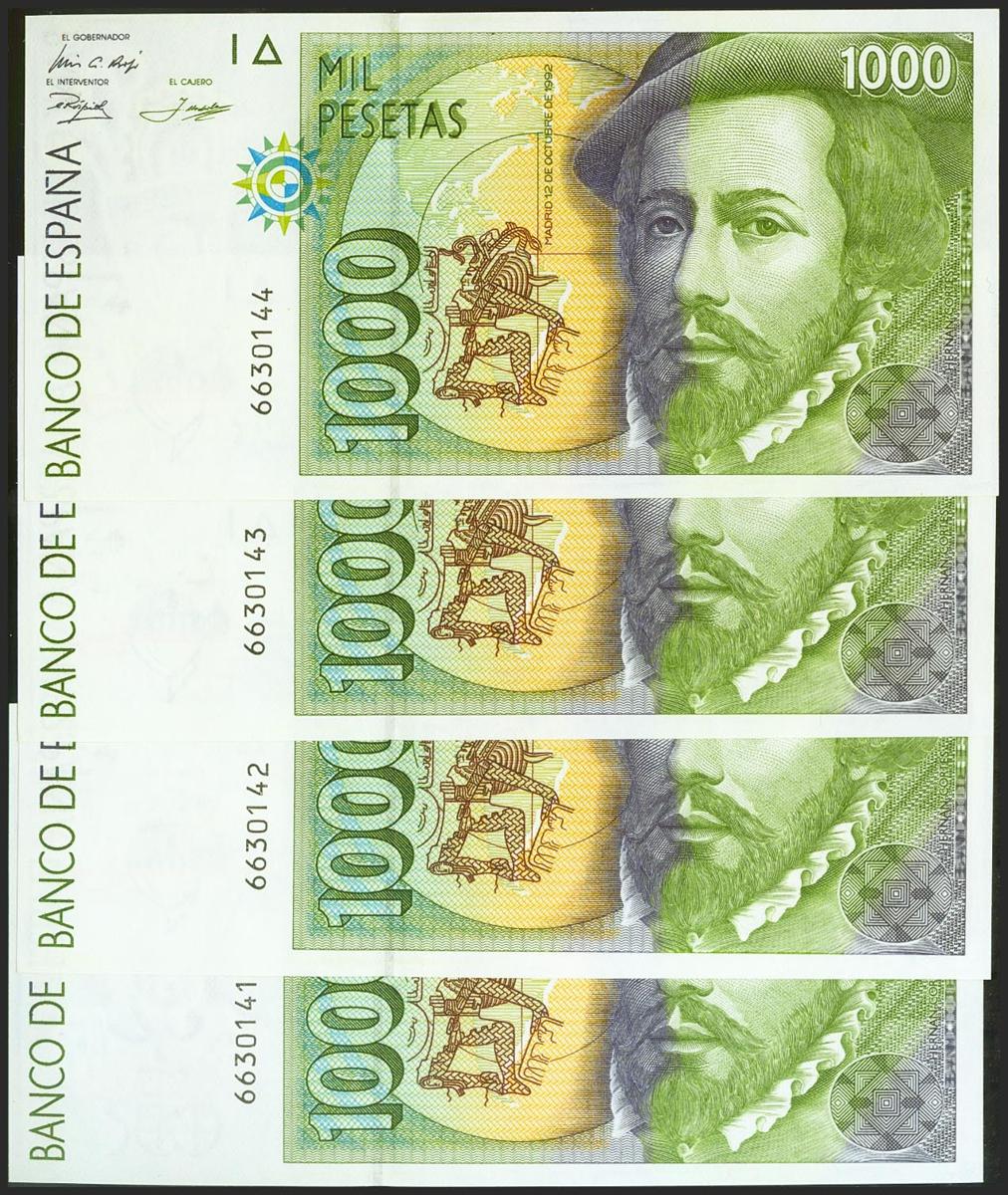 Set of 4 banknotes of 1000 Pesetas, issued on October 12, 1992, without series. (Edifil 2021: 483). Uncirculated.