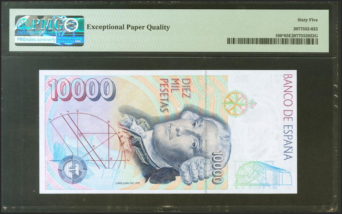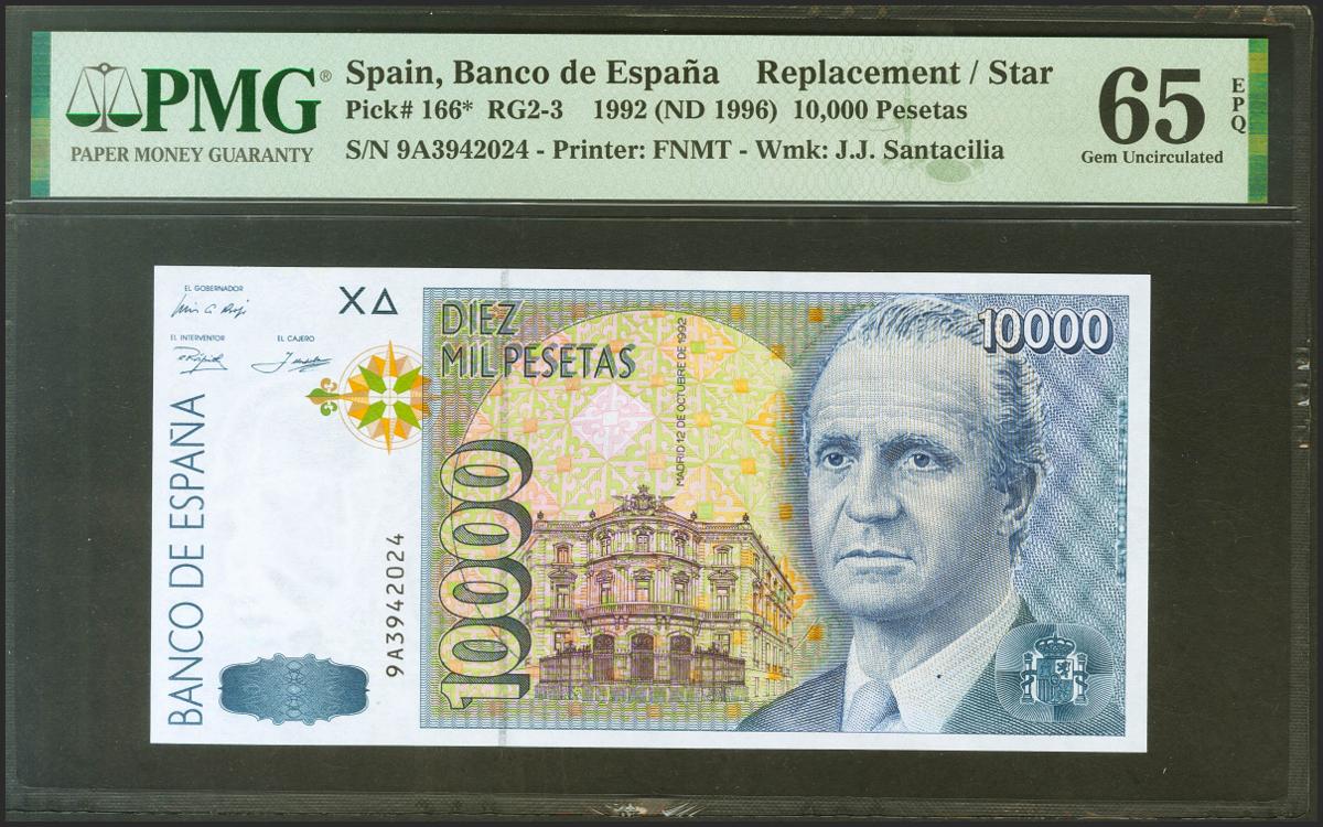 10,000 Pesetas. October 12, 1992. Special series 9A. (Edifil 2021: 485b, Pick: 166*). Original sizing. Uncirculated. PMG65EPQ package.