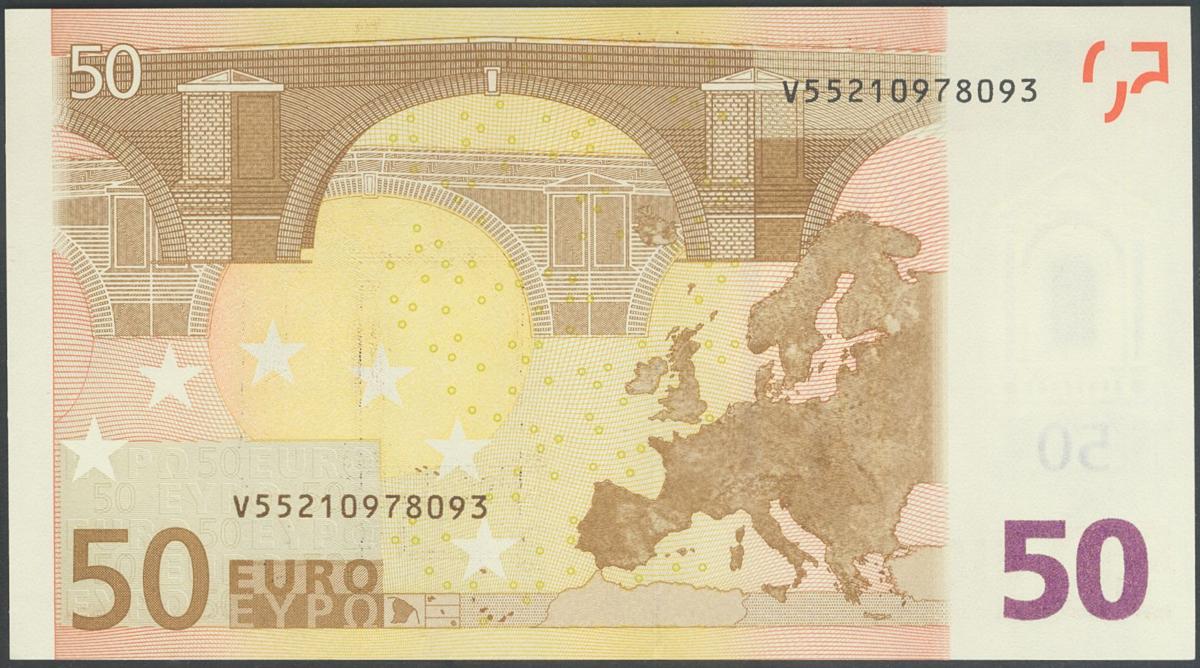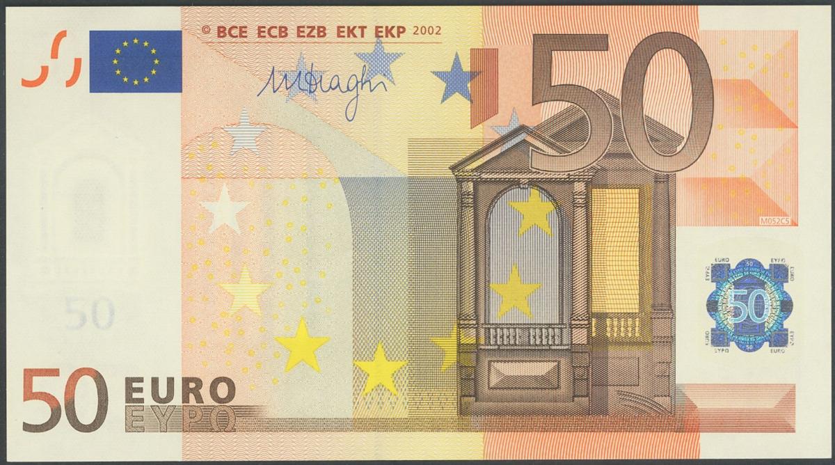 50 euros. January 1, 2002. Signature Draghi. Series V (Spain). (Edifil 2017: 489B). Uncirculated.