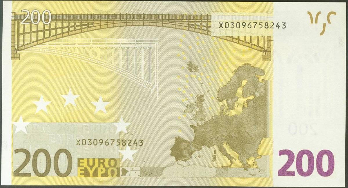 200 euros. January 1, 2002. Signature Trichet. Series X (Germany). (Edifil 2017: 491). Uncirculated.