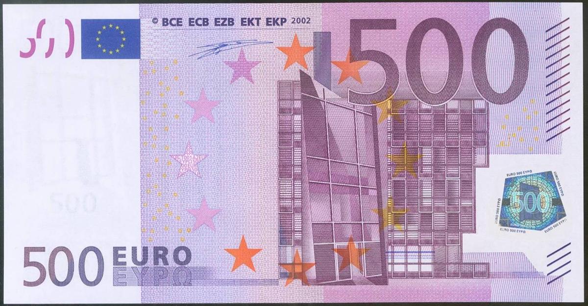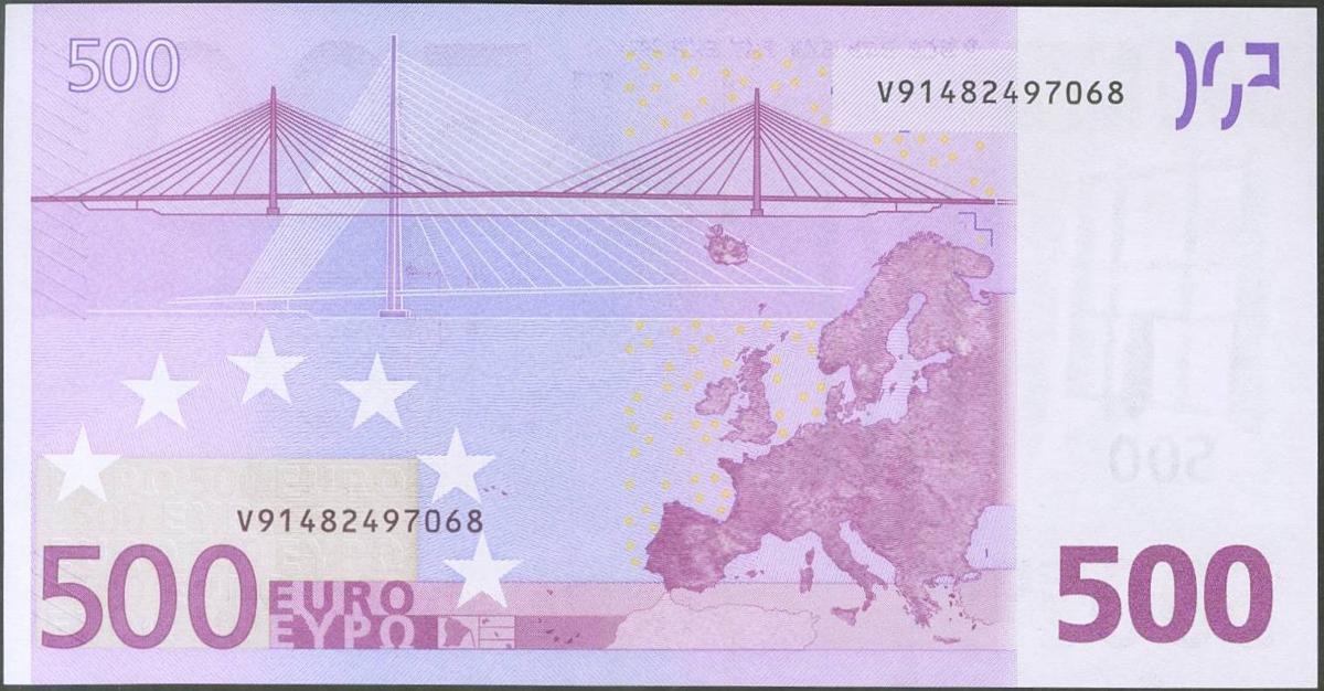 English 500 euros. January 1, 2002. Signature Duisenberg. Series V (Spain). (Edifil 2021: 492). Uncirculated.