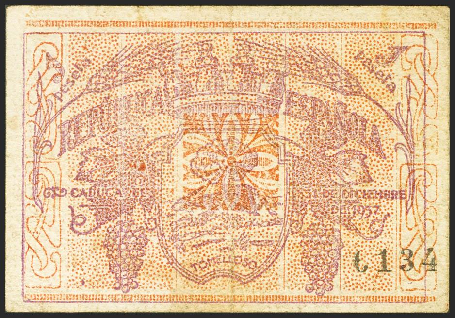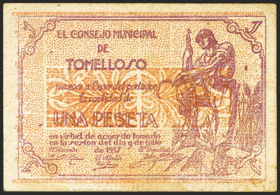 TOMELLOSO (REAL CITY). 1 Peseta. July 9, 1937. (González: 5045). Unusual. Good Very Fine.