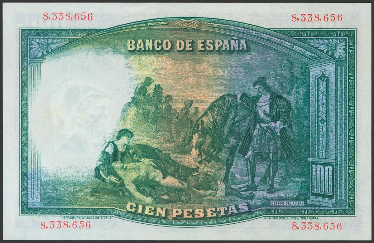 100 pesetas. April 25, 1931. No series. (Edifil 2017: 360). It retains all its original sizing. Almost Uncirculated.