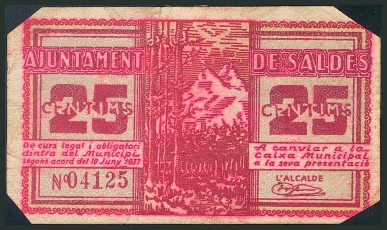 SALDES (BARCELONA). 25 cents. June 10, 1937. (González: 9816). Unusual. Good.