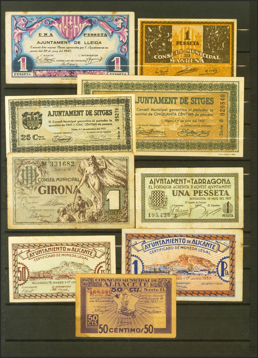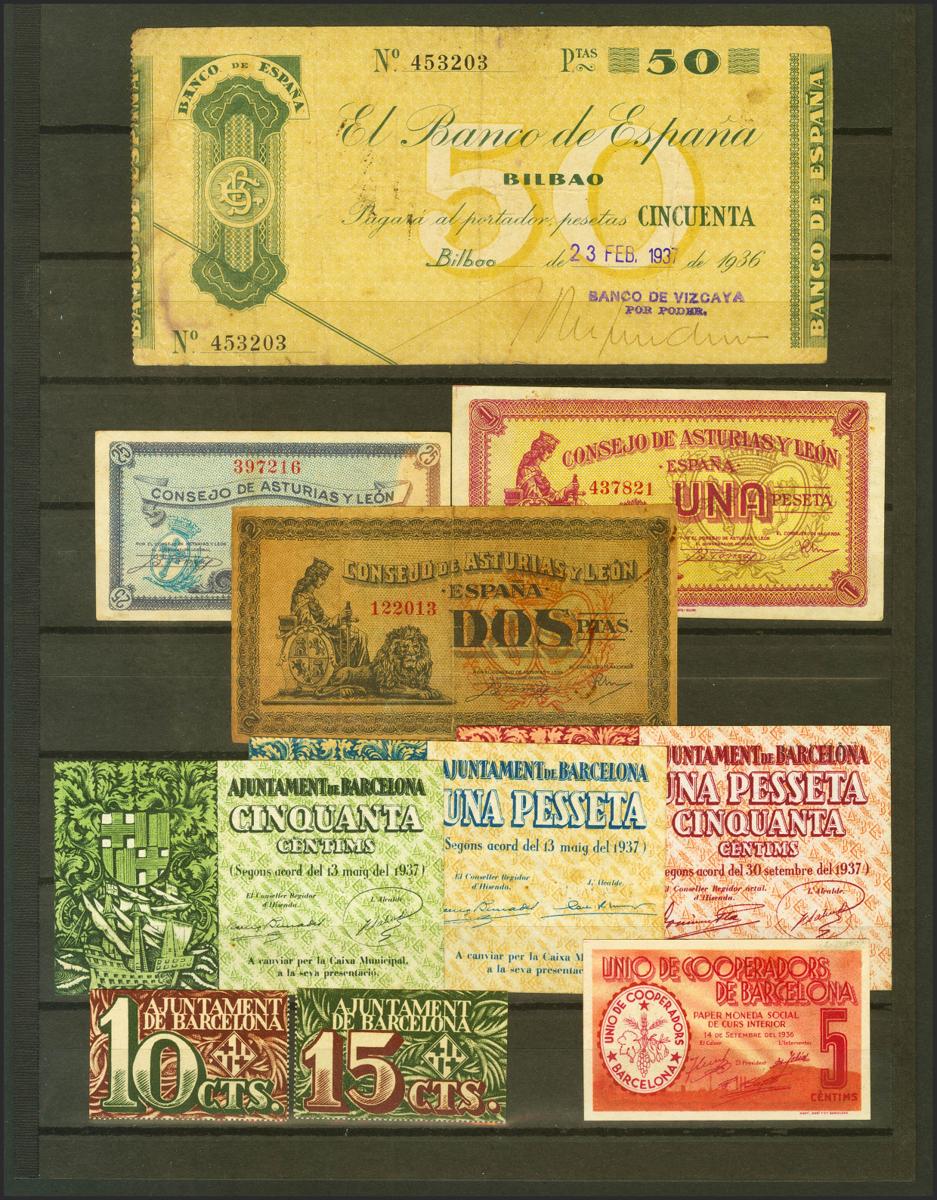 Set of 18 banknotes mainly from the Civil War from different locations and in addition to the Bank of Spain, all of them in different qualities. TO EXAMINE.