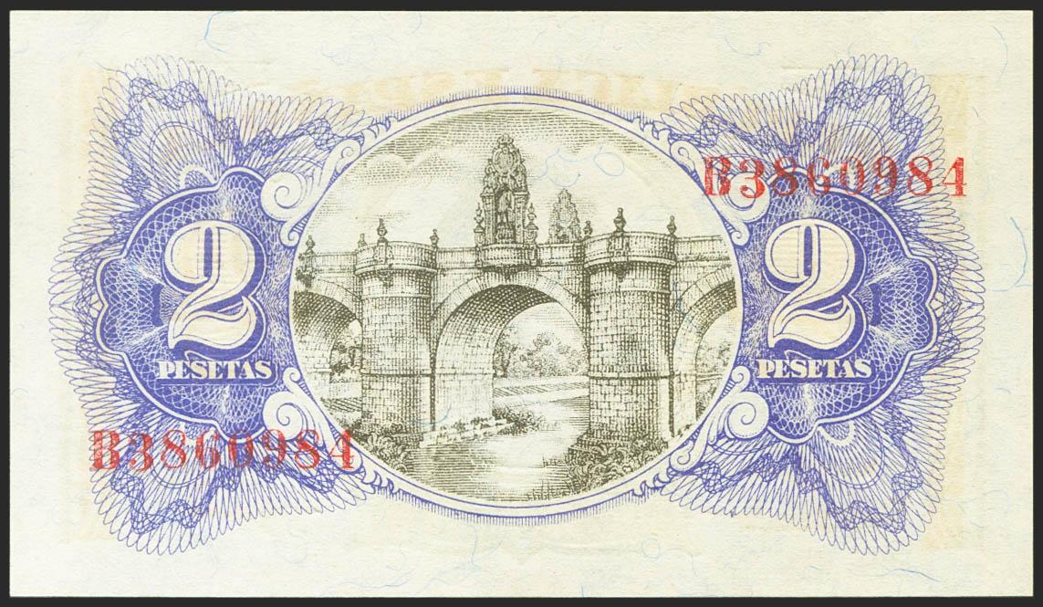 2 Pesetas. 1937. Ministerio de Hacienda. Serie B. (Edifil 2021: 393). Apresto original. SC.