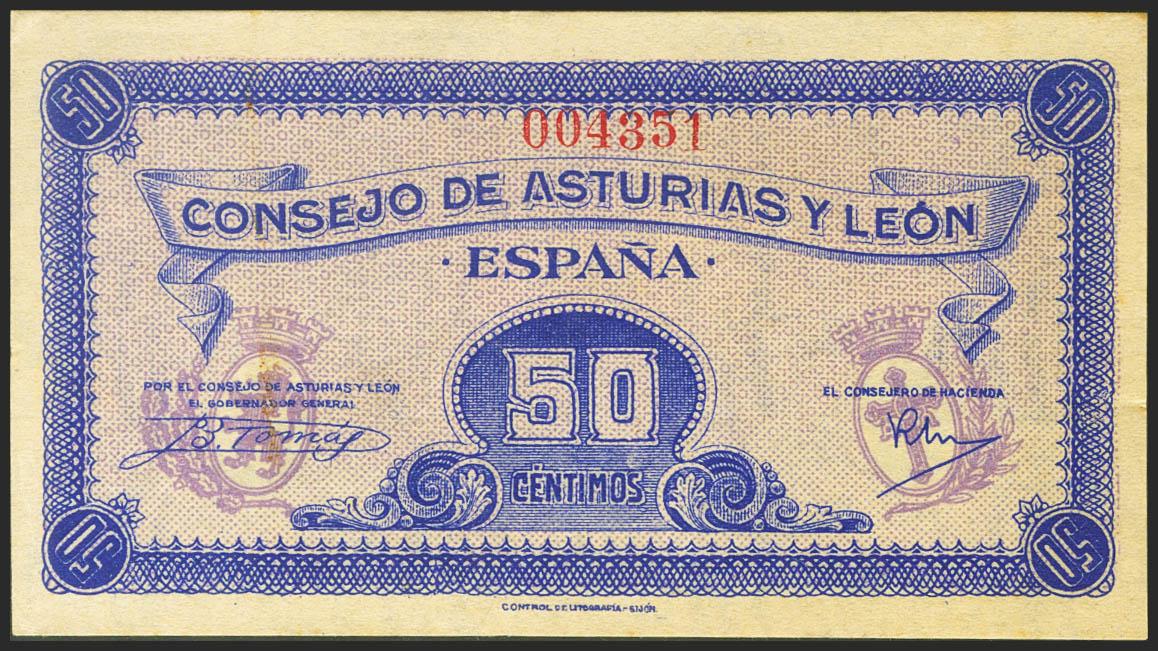 50 Céntimos. 1937. Asturias y León. (Edifil 2021: 396). Apresto original. SC--.