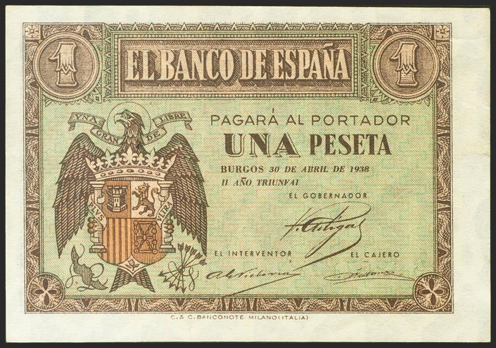 1 Peseta. 30 de Abril de 1938. Serie B. (Edifil 2021: 428a). Apresto original. SC.