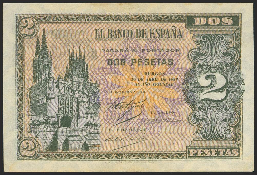 2 Pesetas. 30 de Abril de 1938. Serie C. (Edifil 2021: 429a). Apresto original. SC-.