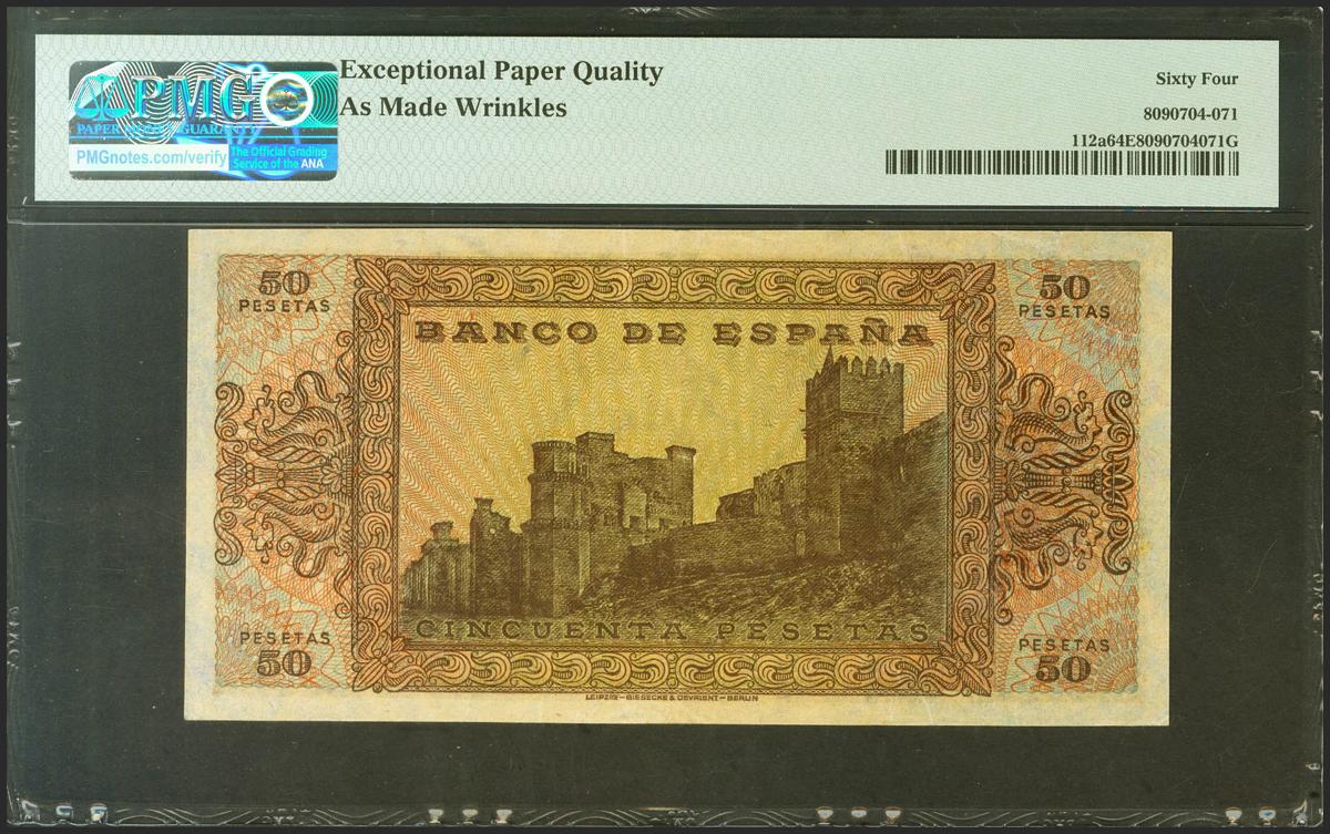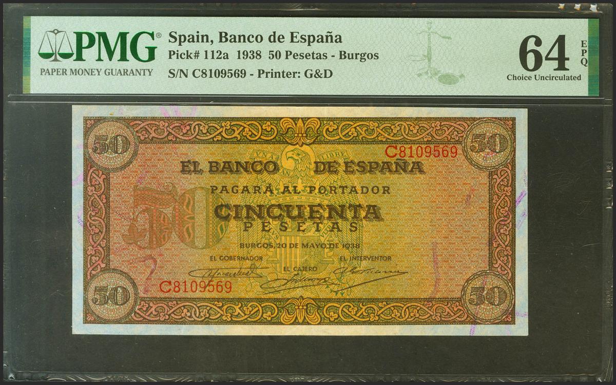 50 Pesetas. 20 de Mayo de 1938. Serie C. (Edifil 2021: 431a, Pick: 112a). Apresto original. SC. Encapsulado PMG64EPQ.