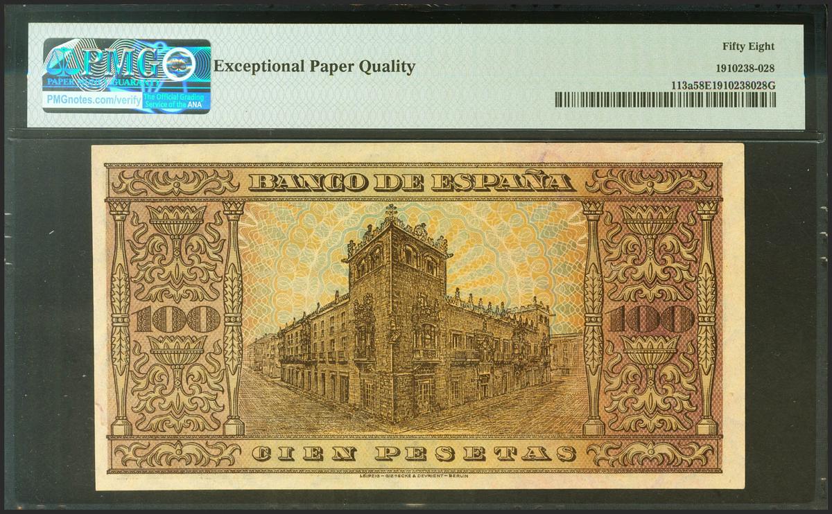100 Pesetas. 20 de Mayo de 1938. Serie C. (Edifil 2021: 432a, Pick: 113a). Apresto original. EBC+++. Encapsulado PMG58EPQ.