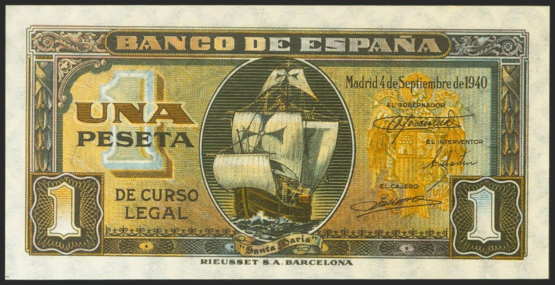 1 Peseta. 4 de Septiembre de 1940. Serie A. (Edifil 2021: 442a). Apresto original. SC-.