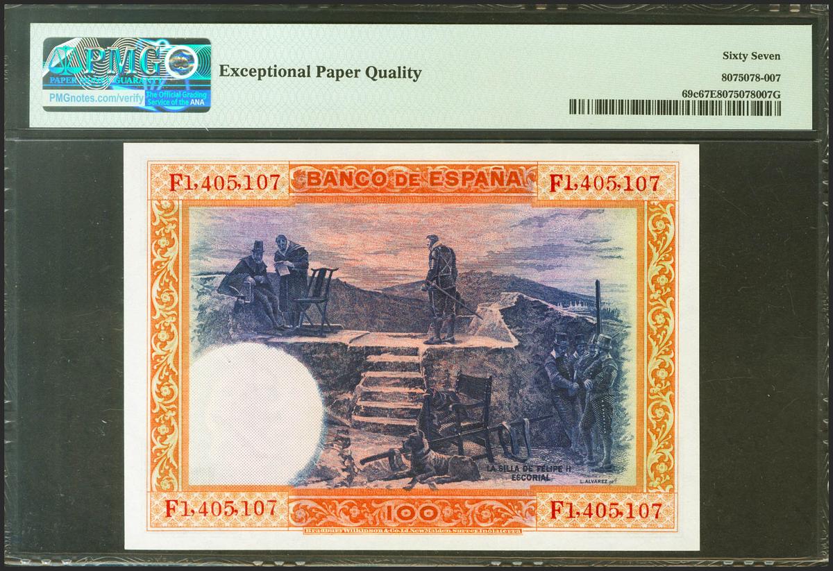 100 Pesetas. 1 de Julio de 1925. Serie F. (Edifil 2021: 350, Pick: 69c). Inusual en esta excepcional calidad. SC. Encapsulado PMG67EPQ.