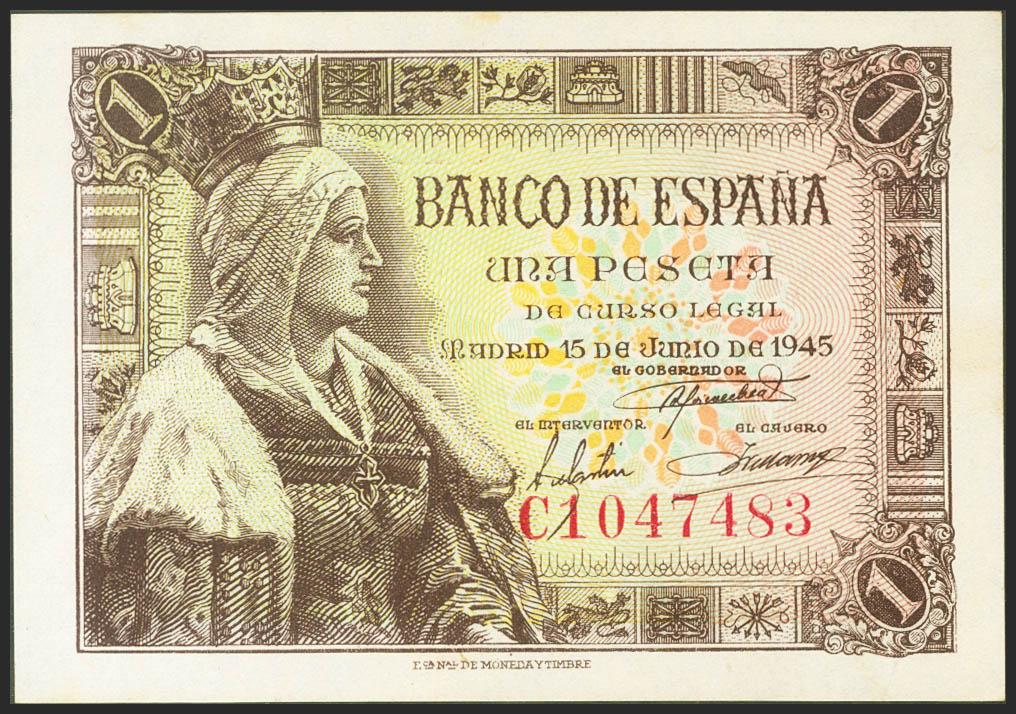 1 Peseta. 15 de Junio de 1945. Serie C. (Edifil 2021: 448a). Apresto original. SC-.