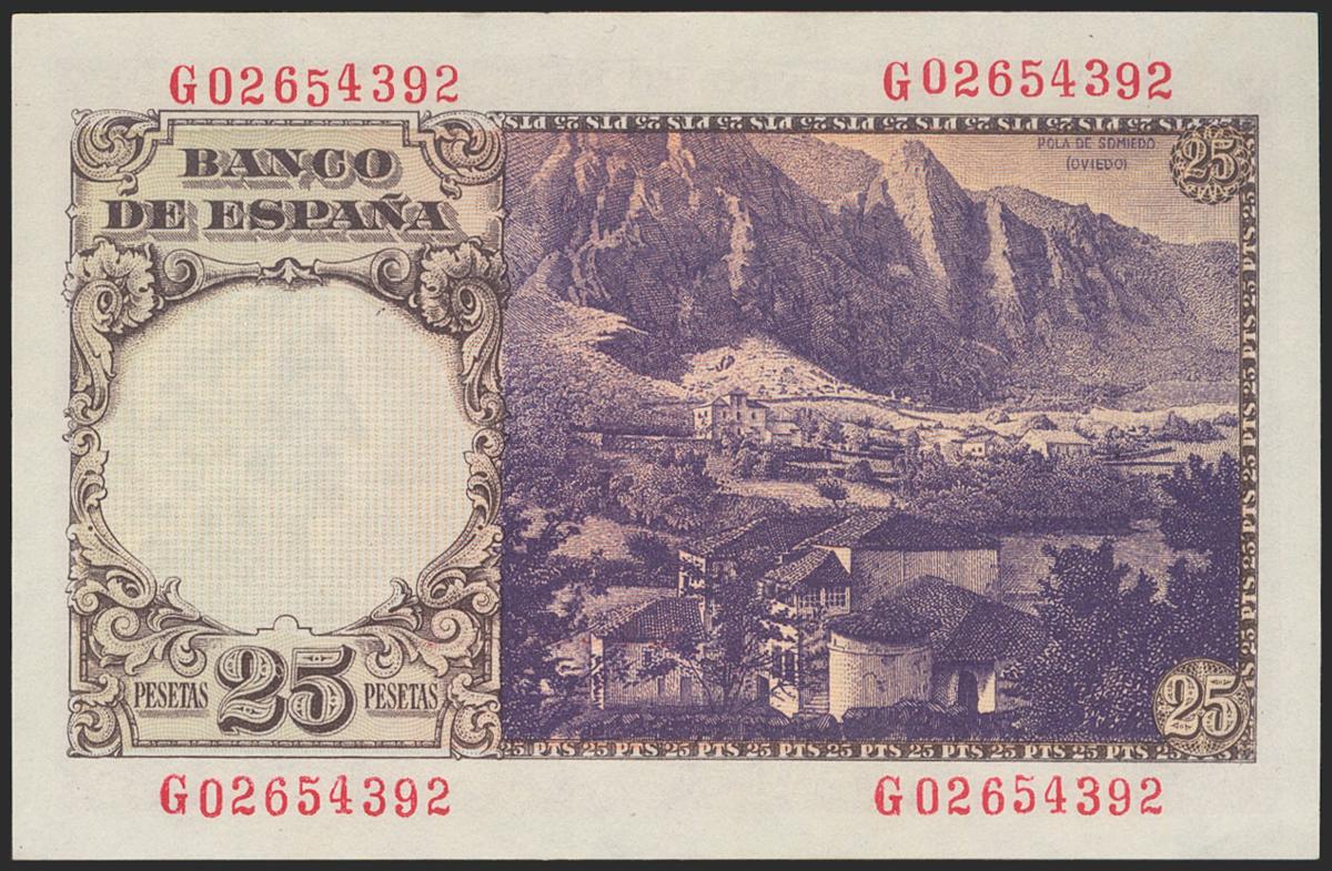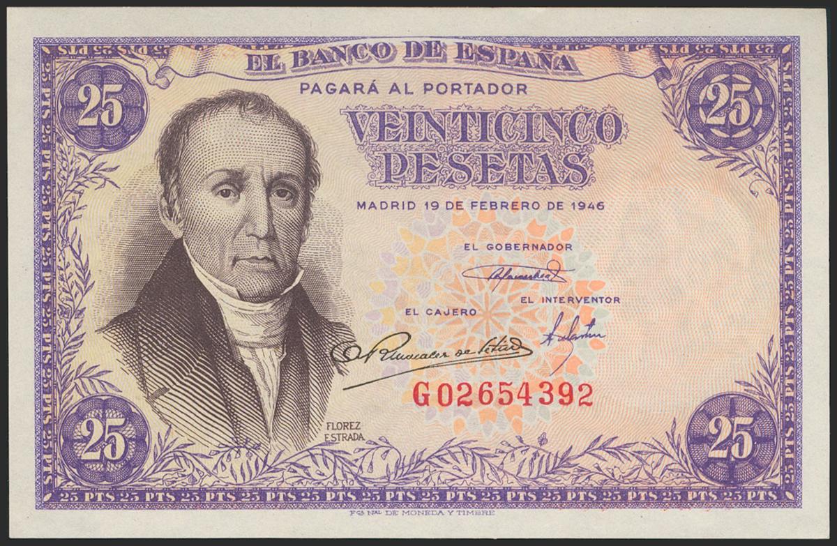 25 Pesetas. 19 de Febrero de 1946. Serie G. (Edifil 2021: 450a). Apresto original. SC.