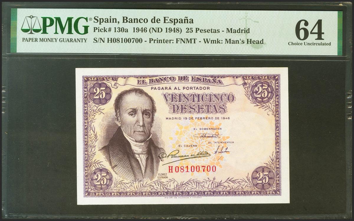 25 Pesetas. 19 de Febrero de 1946. Serie H. (Edifil 2021: 450a, Pick: 130a). SC. Encapsulado PMG64.