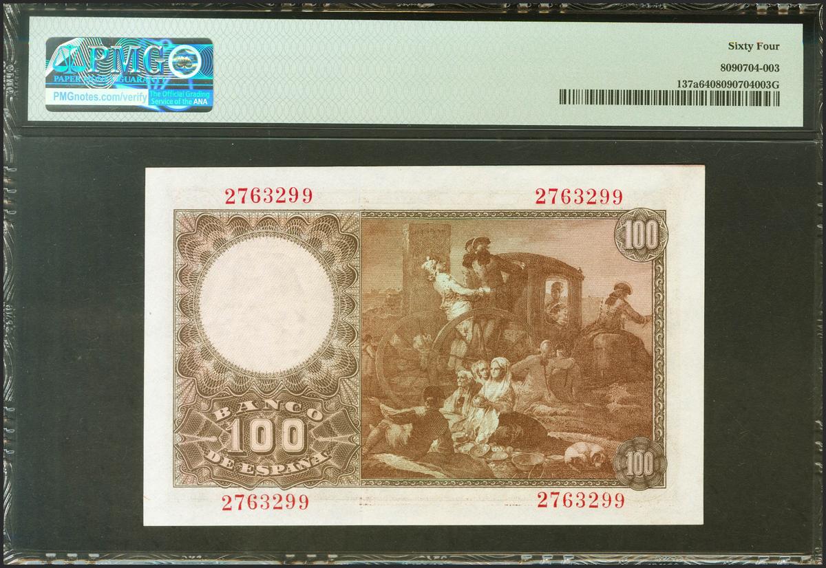 100 Pesetas. 2 de Mayo de 1948. Sin serie. (Edifil 2021: 456, Pick: 137a). SC. Encapsulado PMG64.