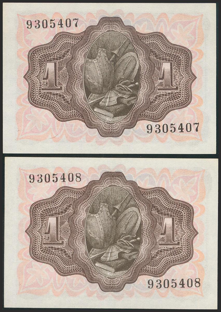1 Peseta. 19 de Noviembre de 1951. Pareja correlativa. Sin serie. (Edifil 2021: 461). Apresto original. SC.