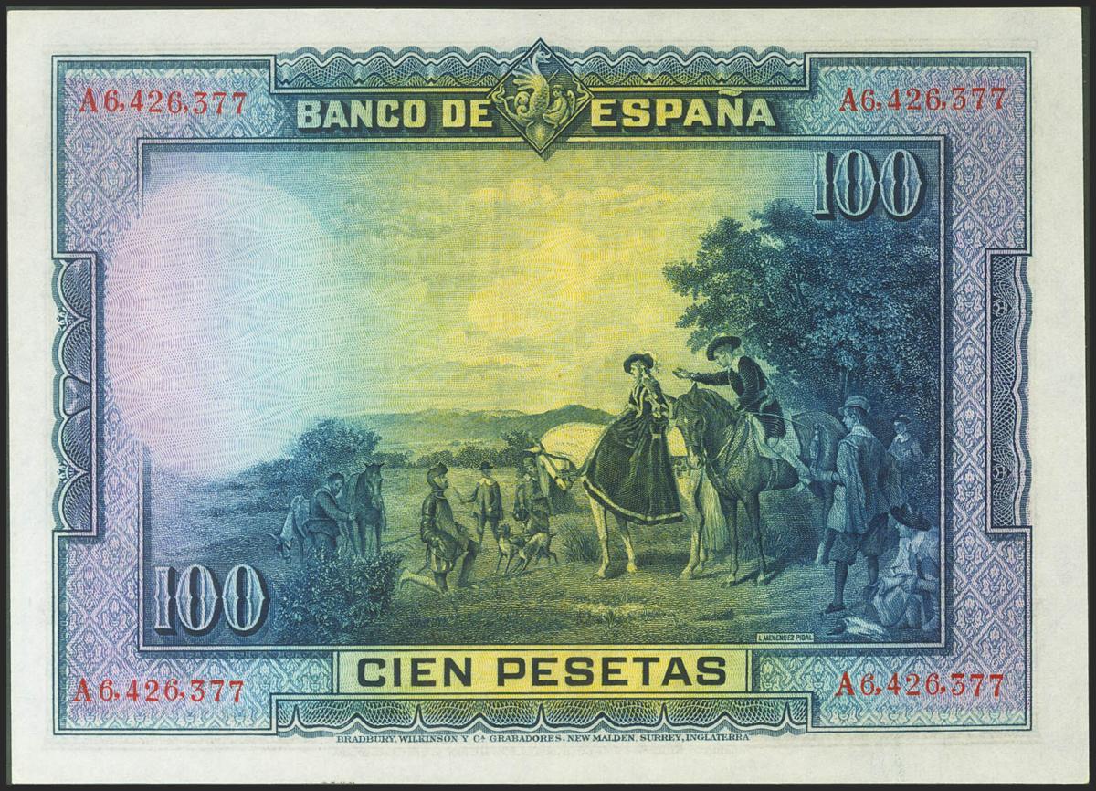 100 Pesetas. 15 de Agosto de 1928. Serie A. (Edifil 2021: 355a). Apresto original. SC.